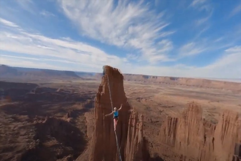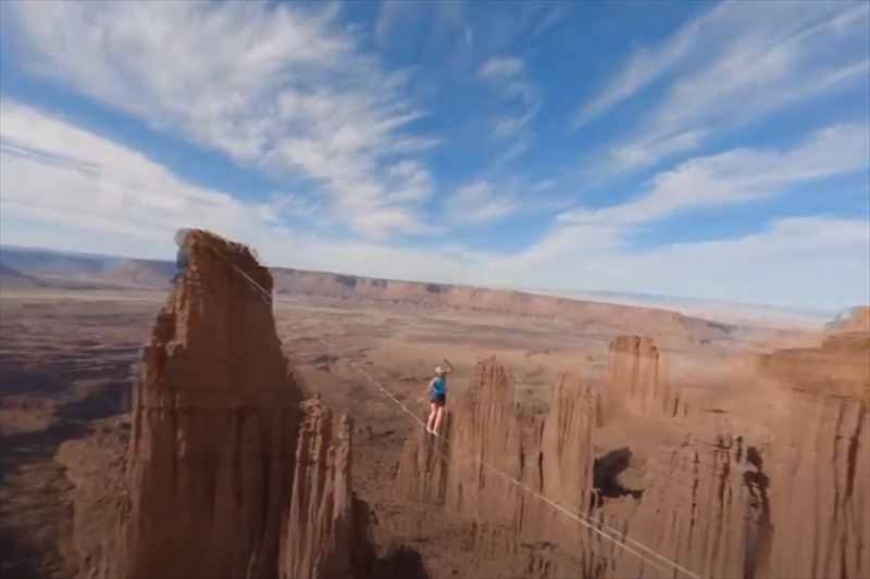 これだけ高い場所でのスラックラインだと、バランス感覚や体幹に加え、精神力も求められますね!壮大な自然の光景を堪能できるので、ぜひ動画もご覧ください!