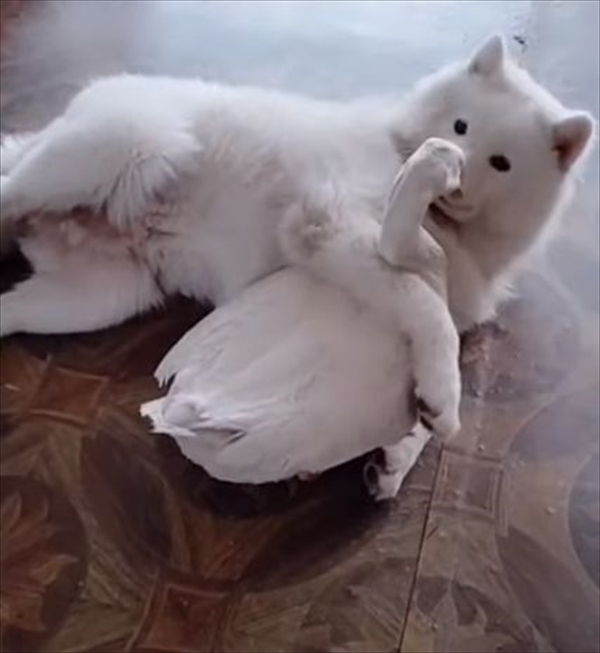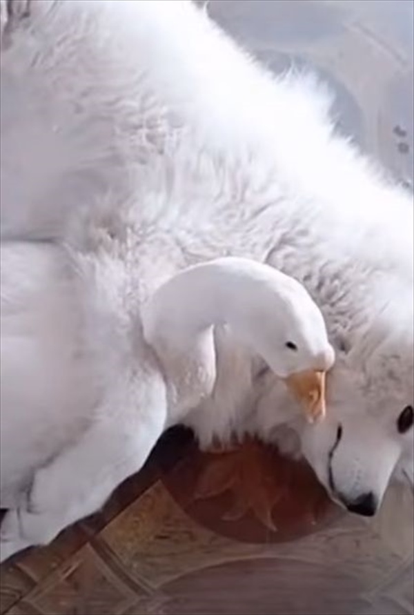 互いに真っ白なことも相まって同化しているような感覚にもなります。見ているだけで癒されるワンコとガチョウの様子は、ぜひ動画でもご覧ください!