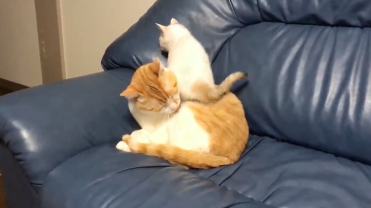 ちょこんと乗っかっちゃった仔猫ちゃんも、固まったお兄ちゃんも❤️— rikaにゃんこず (@rika102914) January 17, 2021