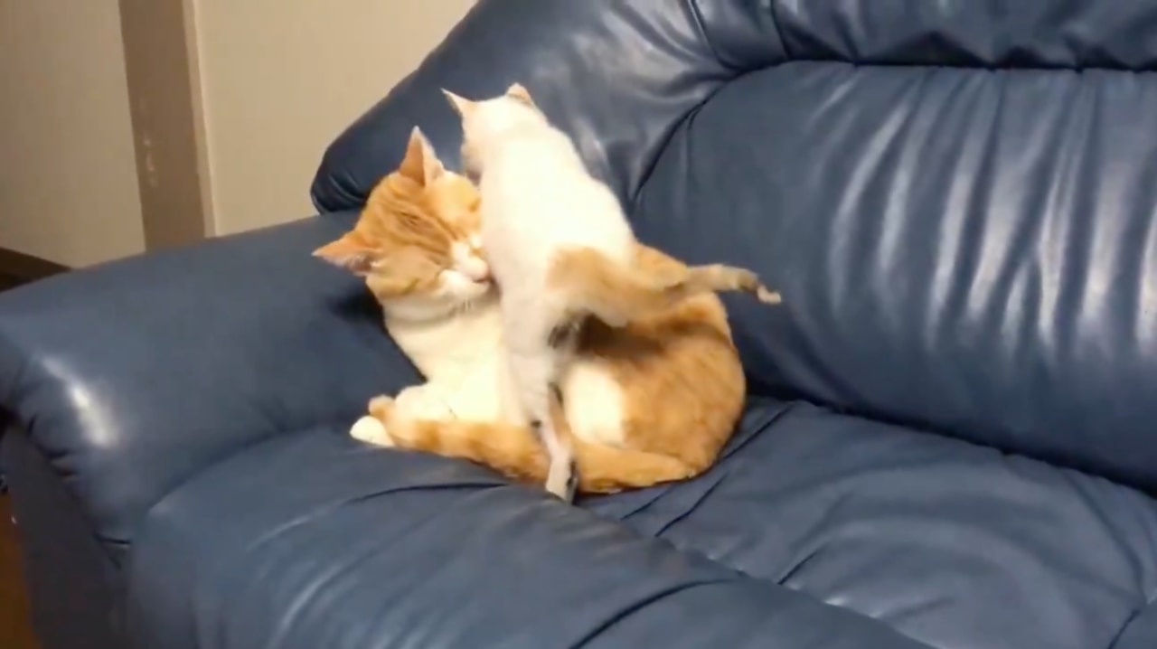 むぎくんの上に登り始めたキキちゃん。そして、この体勢に。
