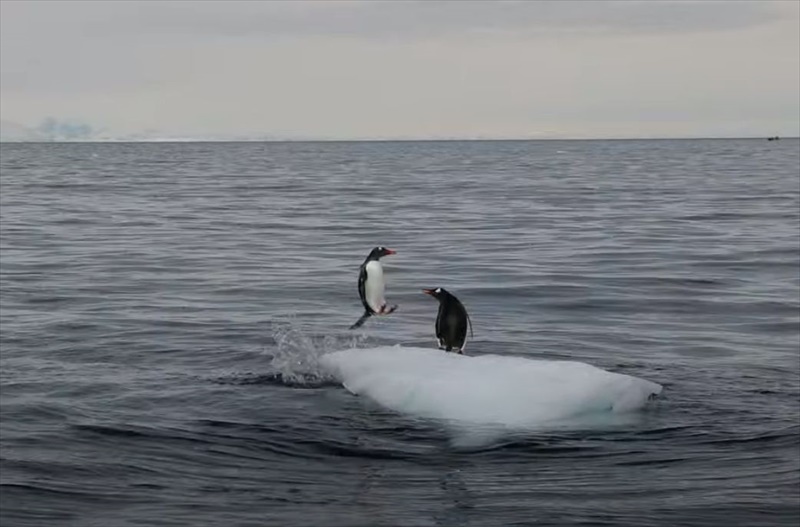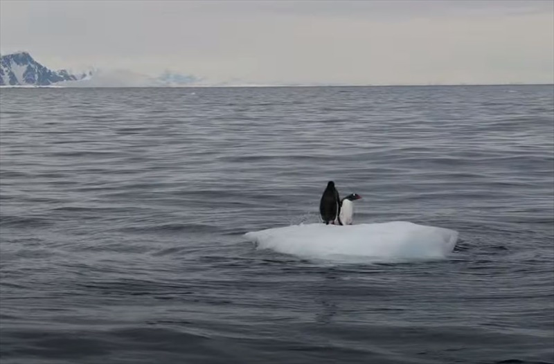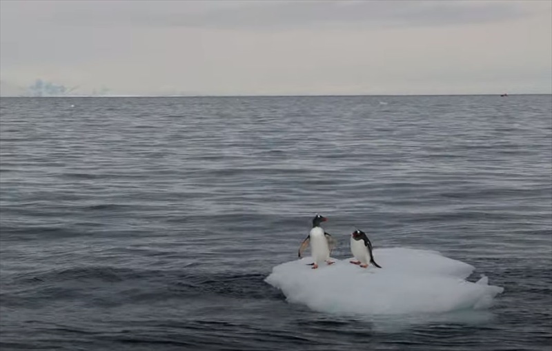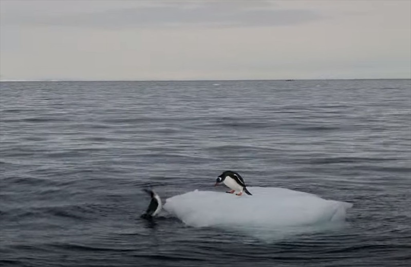 どうやら、プカプカと浮かぶ小さな氷山はペンギンたちに人気のようですね!