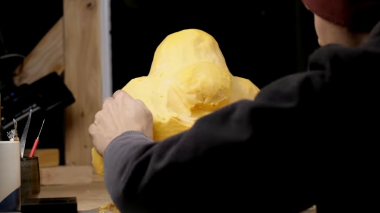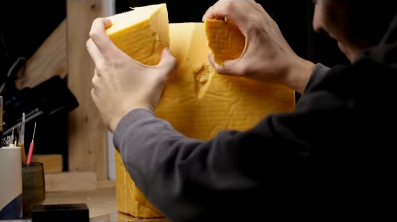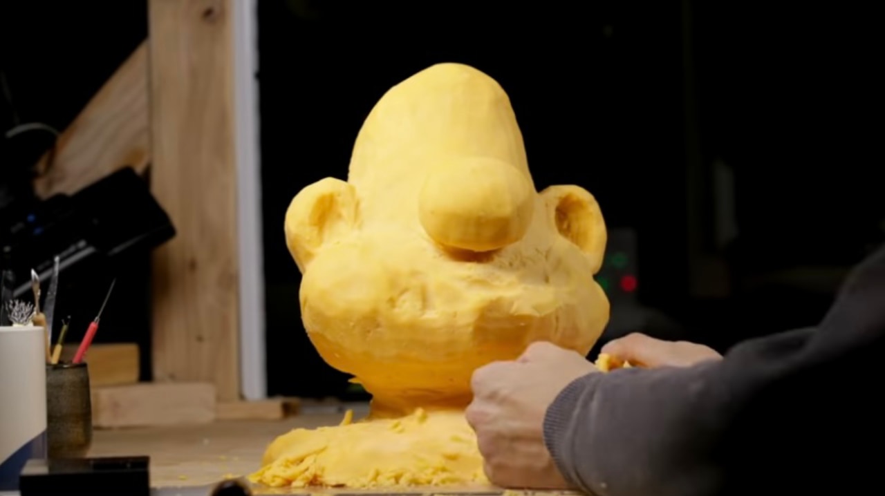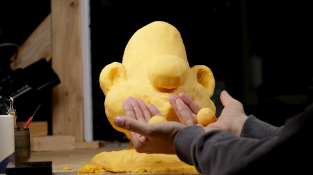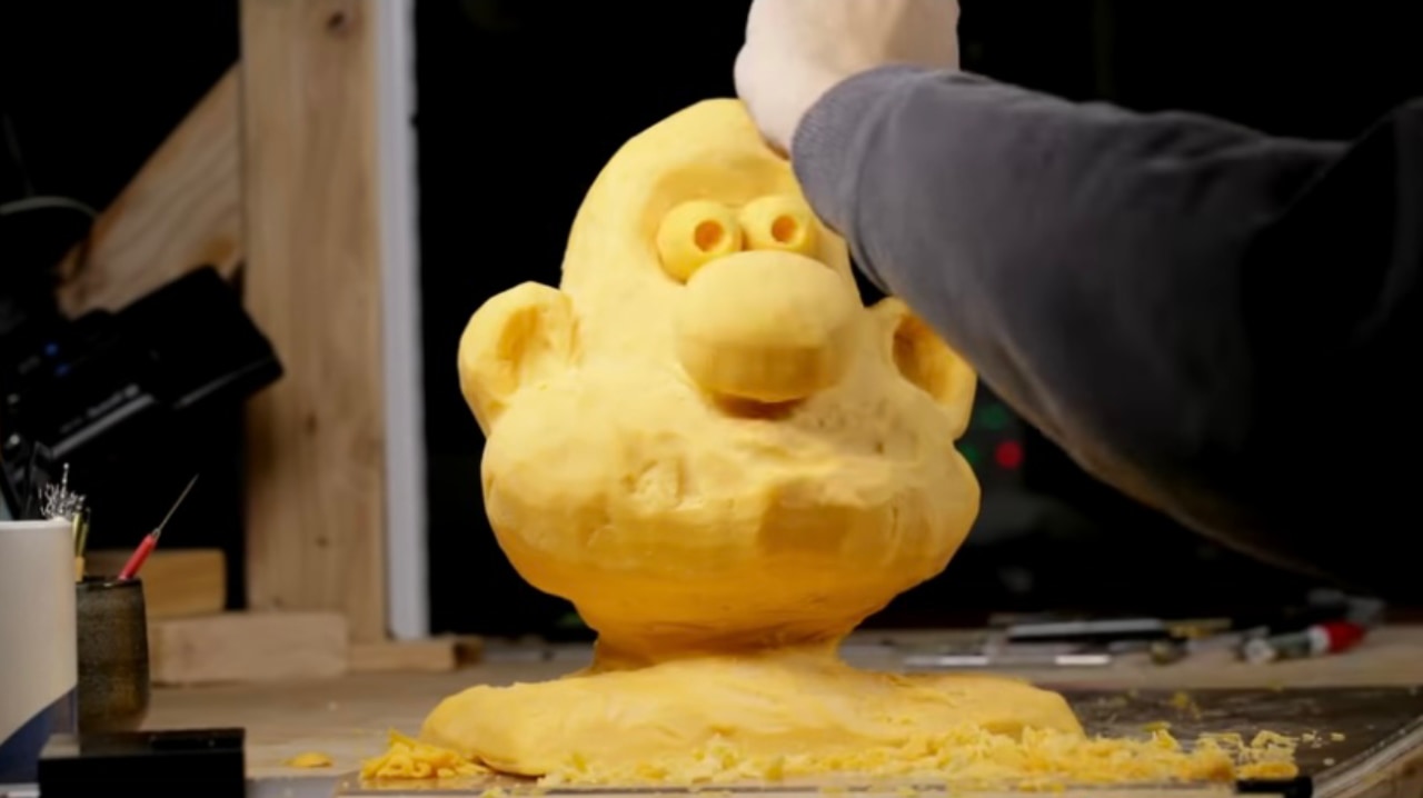 今回ご紹介するのは、ストップモーション作家兼2DアニメーターのLawrence Beckerさんが巨大なチーズを使ってクレイアニメ『ウォレスとグルミット』のウォレスを彫刻するストップモーション動画作品です。
