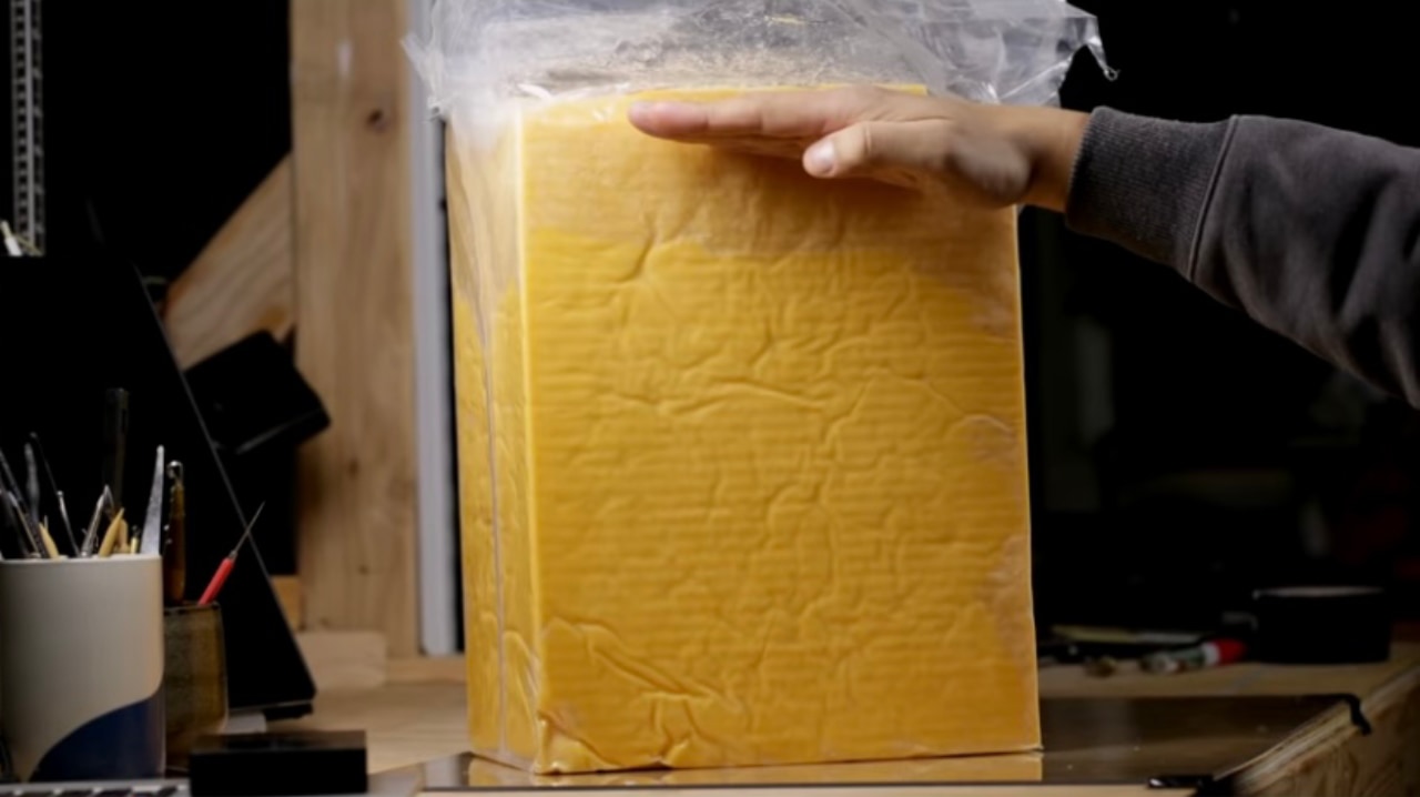 中から現れたのは40lb(約18kg)もある巨大なチェダーチーズ。