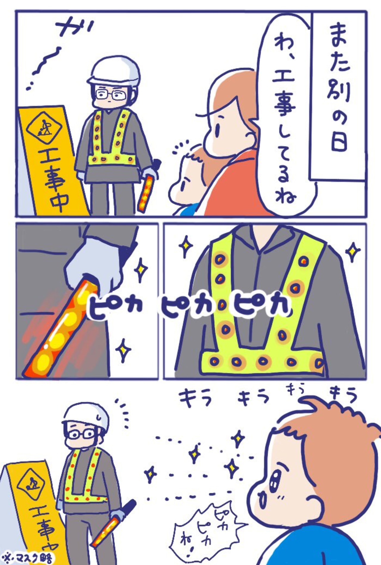 育児漫画家のはみだしみゆき(@HamidashiMiyuki)さんは息子さんが1歳半の時の出来事として、そんな働く車に乗った人たちが見せてくれた素敵な対応を漫画で紹介しています。