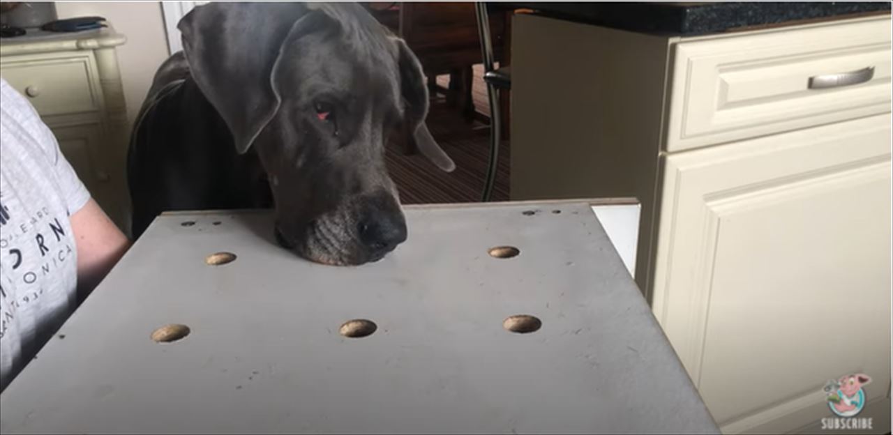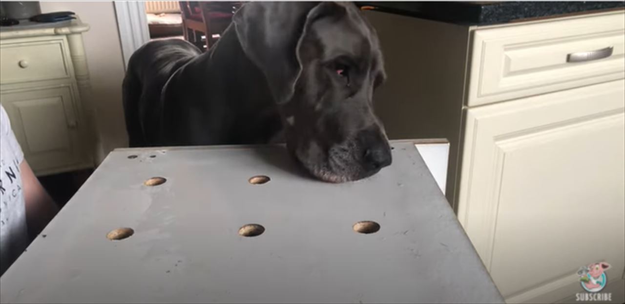 こちらの黒い大型犬はグレートデン。名前を「ムース」という2歳のワンコです。飼い主さんはお家にこもって退屈しているムースを楽しませることにしました。