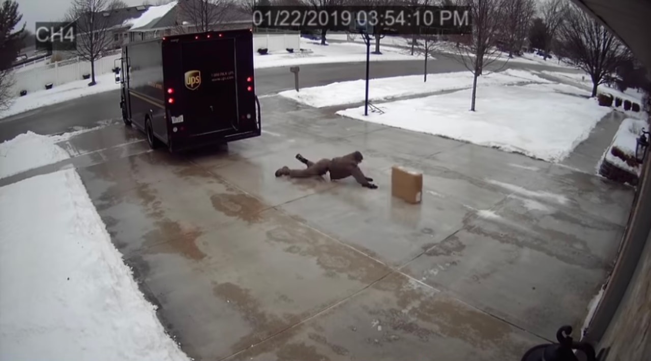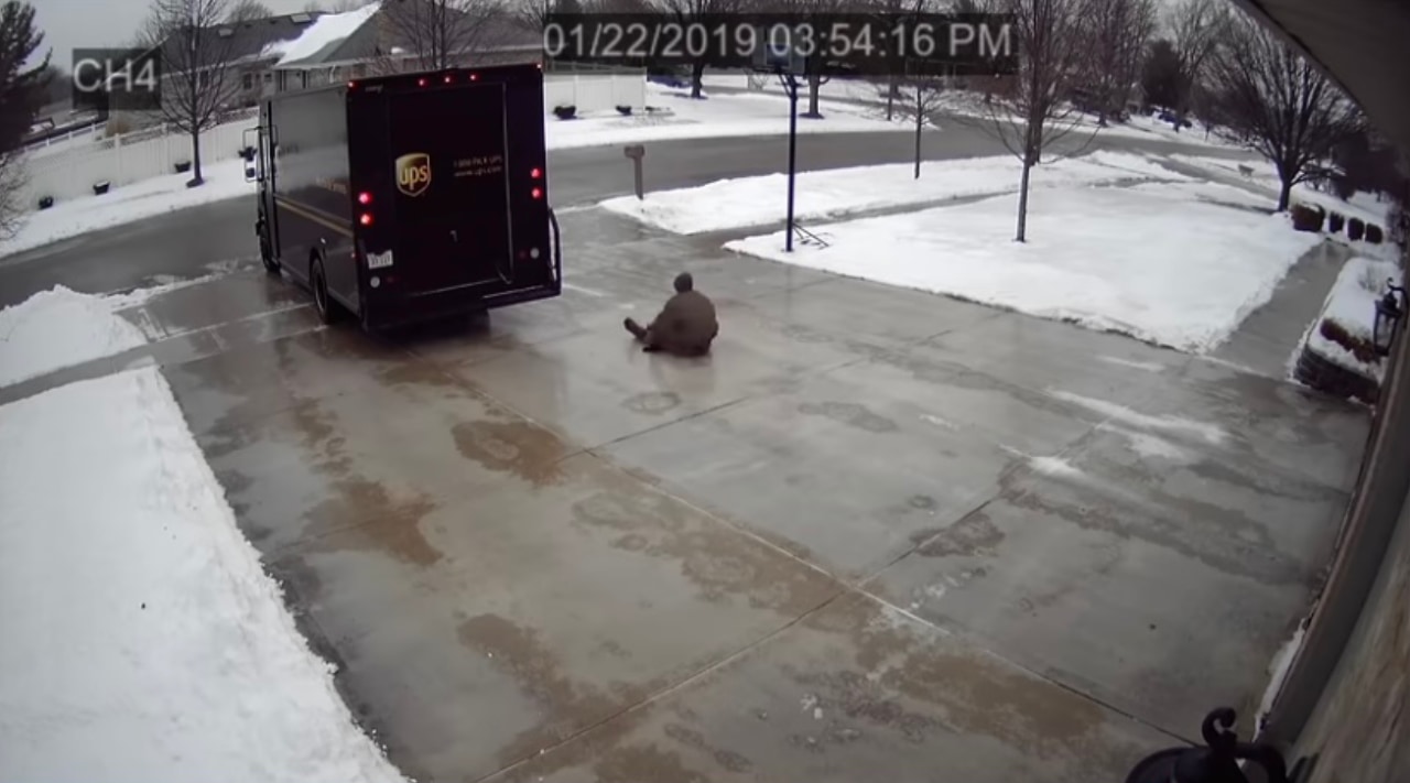 出典:YouTube(UPS Delivery Guy vs. Icy Driveway)