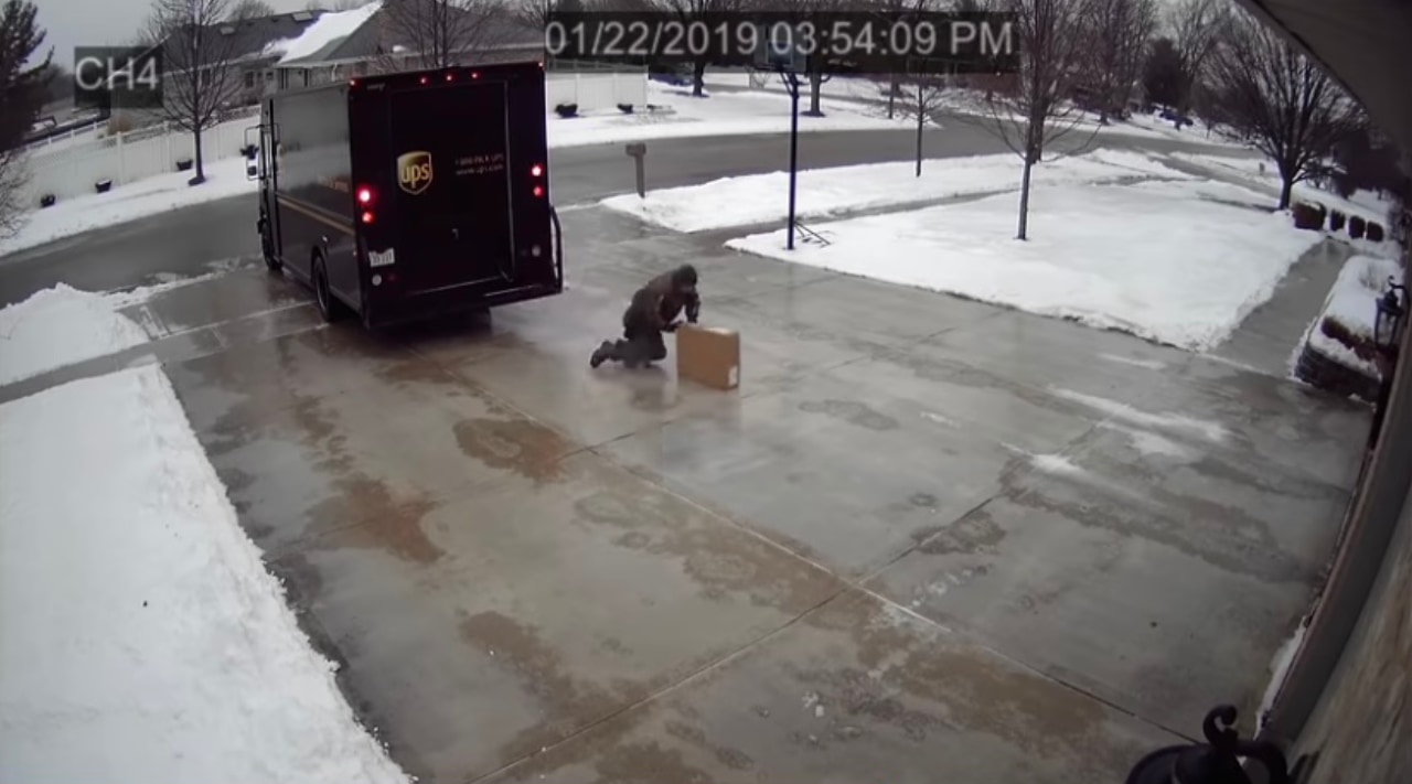 果たしてドライバーの男性は無事に荷物を渡せたのか?屋外のセキュリティカメラが捉えた宅配ドライバーVS凍った地面の戦いをご紹介します。