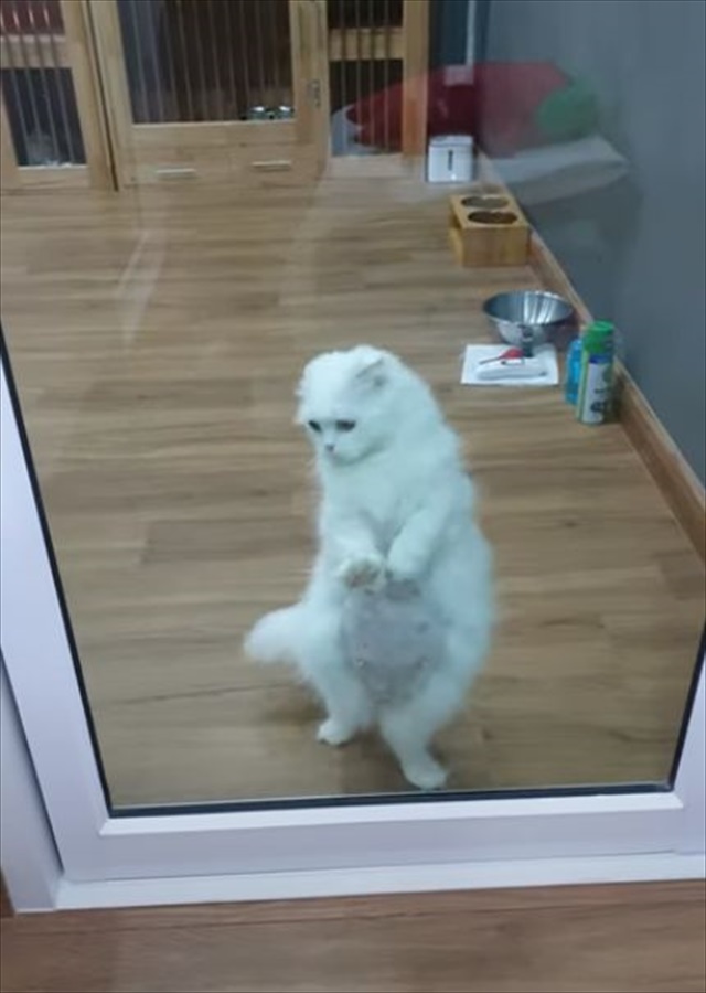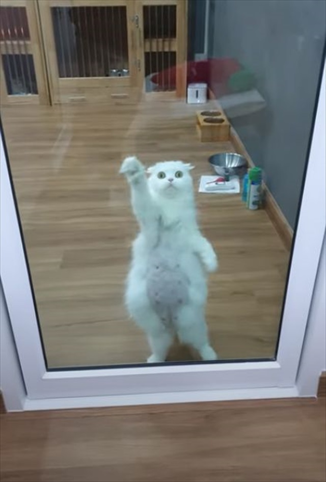 目を大きく見開き、おててを上げ下げして、めちゃめちゃアピールしています!よっぽど飼い主さんに会いたかったのでしょうね。