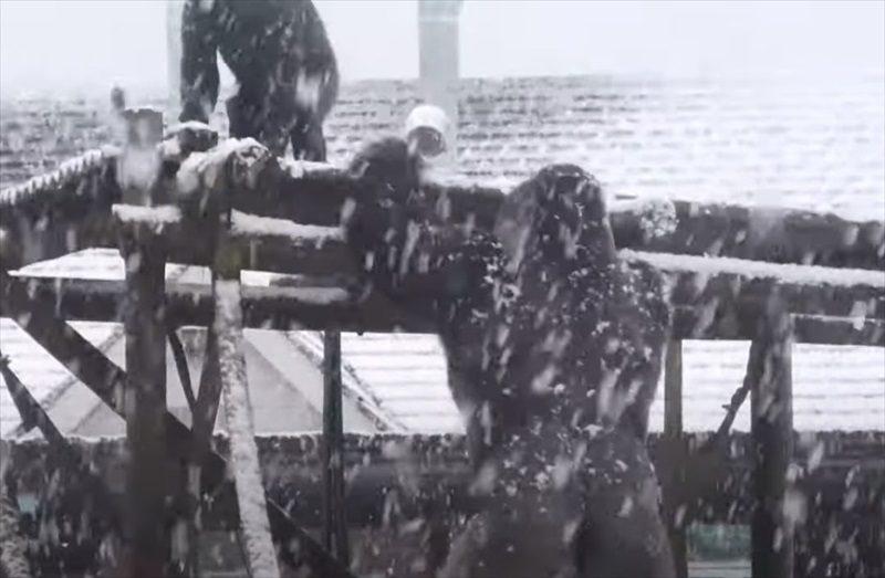 その後、オウンビは屋根の上に積もっている雪を手ですくい、何度も口へ運びます。自然のシャーベットは美味しくてたまらない!?