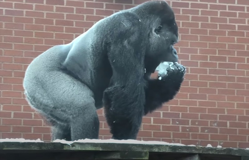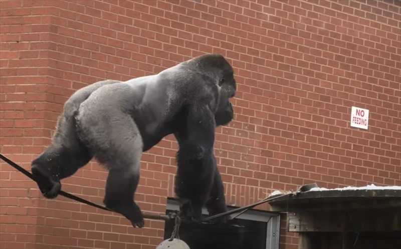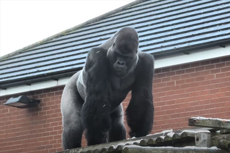 撮影されたのは、イギリスのトワイクロス動物園。オウンビという名前のゴリラが歩いています。