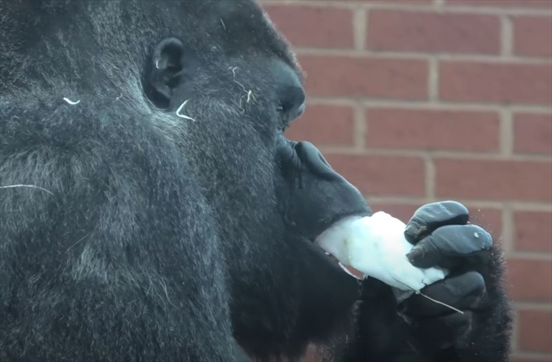 今回ご紹介するのは、そんなゴリラが何かを食べて幸せそうな様子。一体何を食べていたのでしょうか!?