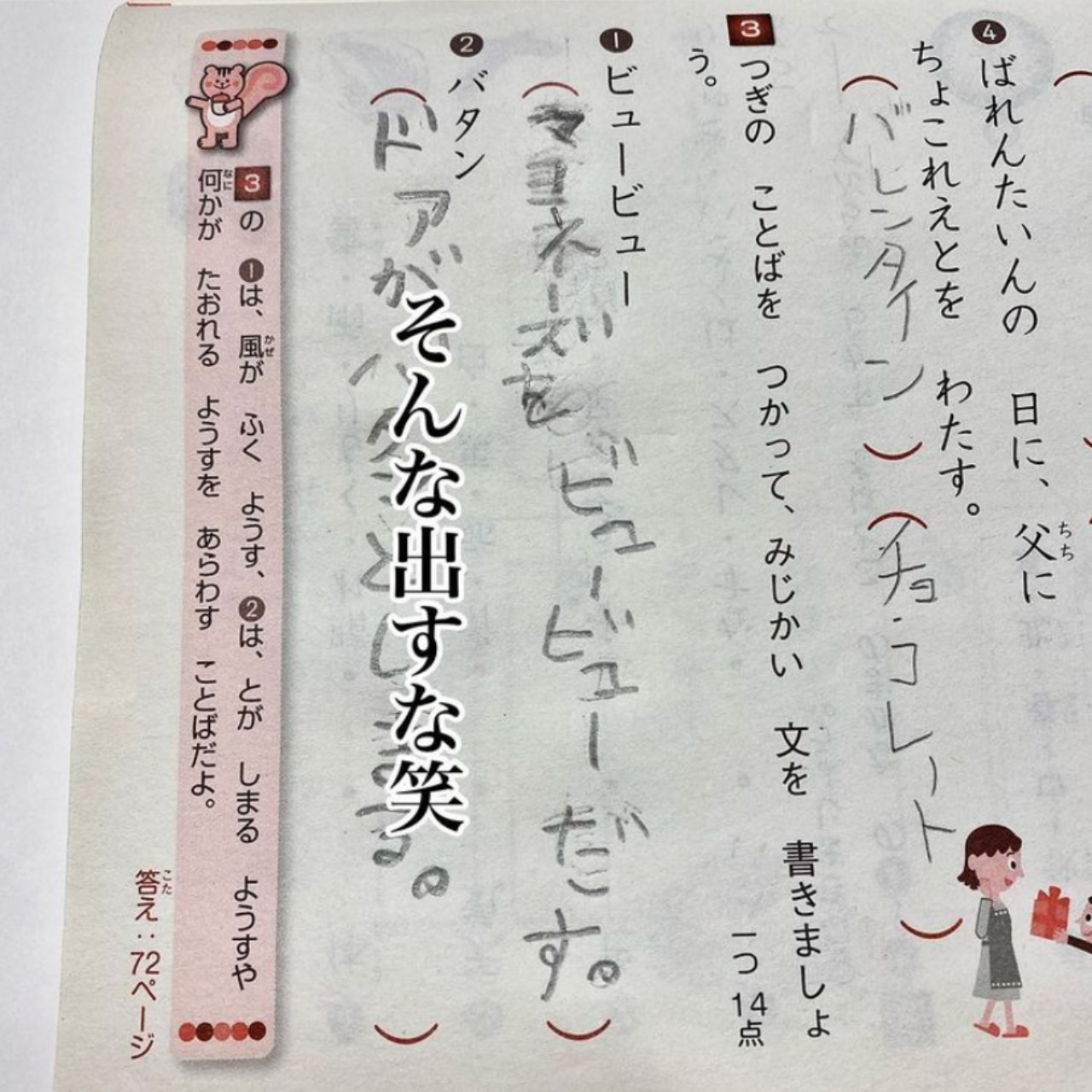 中でも今回ご紹介するのは、小学1年生の次女ちゃんが宿題やドリルで生み出した珍解答と、それに対するお母さんの軽妙なツッコミが入ったおもしろ投稿。腹筋崩壊を覚悟してご覧ください!!