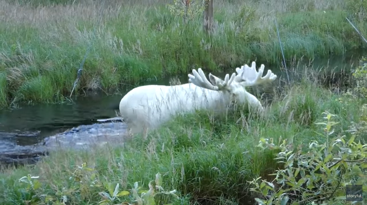 なんとここで全身が真っ白なヘラジカが撮影されました。