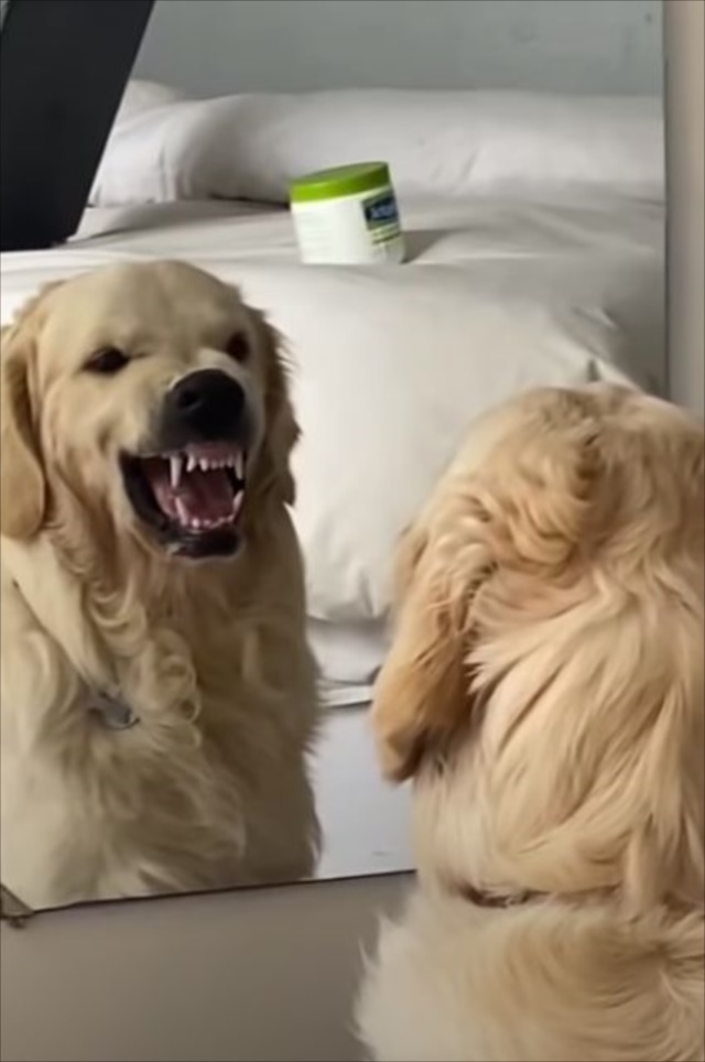 飼い主さんは「最初は鏡の中に見える私のことを見ていると思っていたのですが、途中から犬が自分のことを見ていることに気づきました」と話しています。