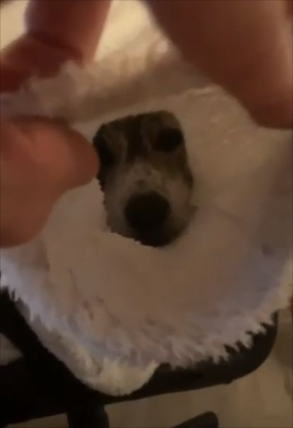 ガウンが暖かくて気に入ったみたいですね。可愛らしいワンコがモゾモゾする様子は、ぜひ動画でもご覧ください!