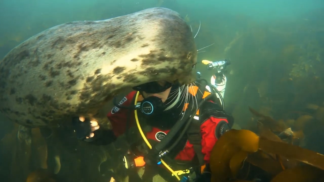 人懐っこいアザラシがダイバーとたわむれて可愛らしさ見せるも、意外な部分に興味を示し…