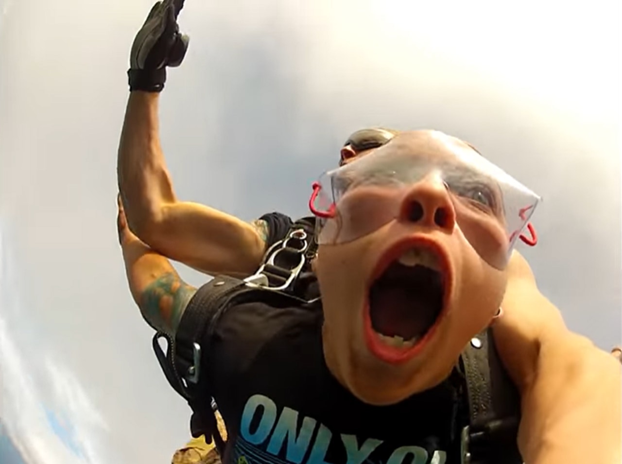 スカイダイビング中に口から飛び出したものは...衝撃のモノに驚き!