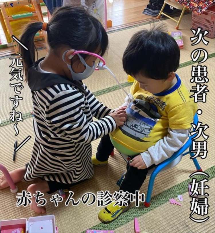 投稿されたのは、5児のお母さんであり、Instagramユーザーの(@yukaaa.o31)さん。お医者さんごっこの一部始終を公開しています。