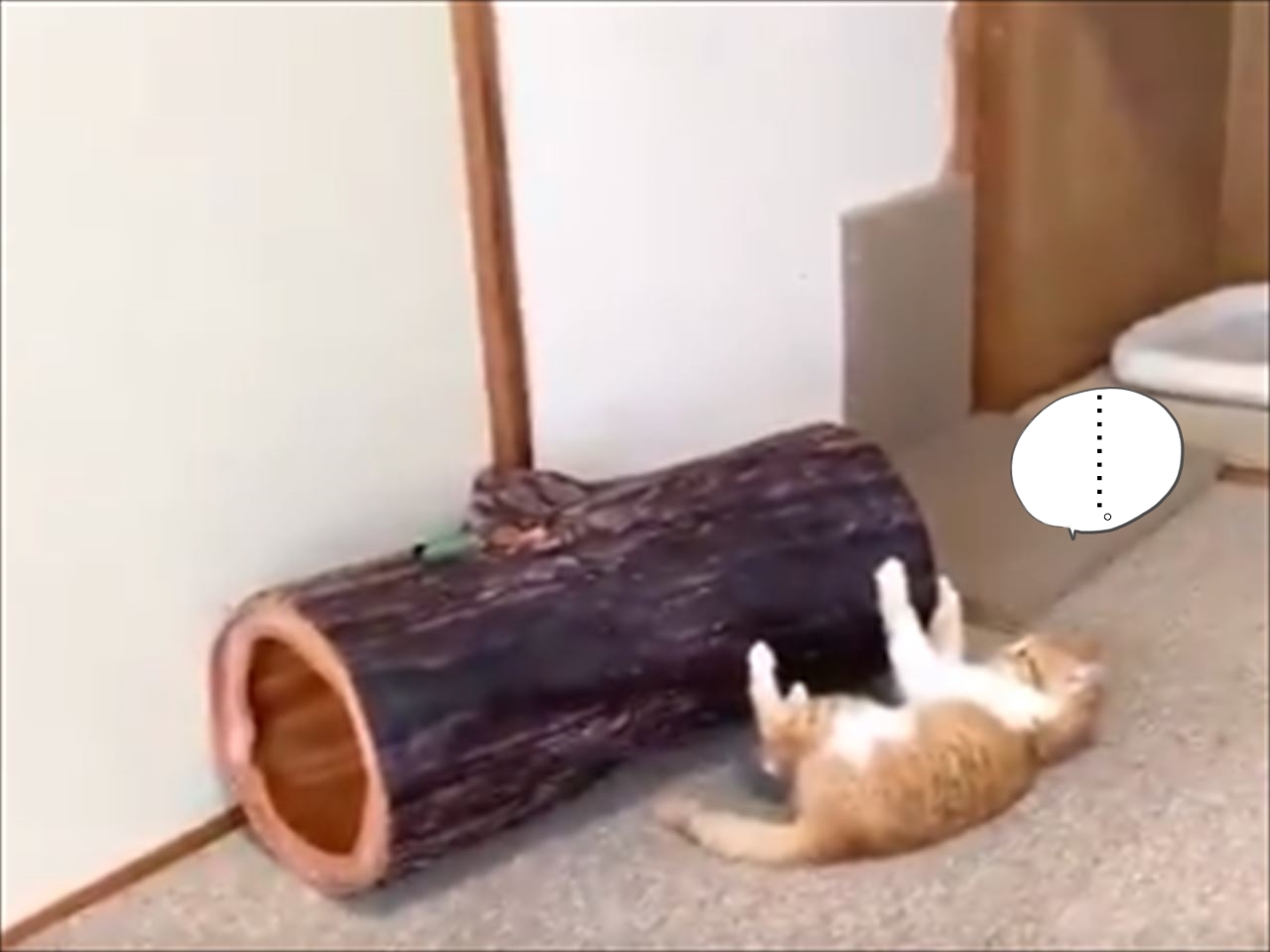 勝利の余韻に浸りながら音符が付いた感じで軽やかなステップで進む茶トラ。ルンルン気分で丸太のおもちゃに飛び乗るのですが、そこで茶トラに思いもよらぬ出来事が起こってしまったようです!
