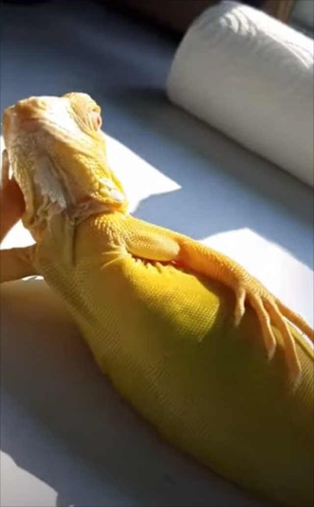 出典:YouTube(Do I Look Hot? Yellow Iguana Sunbathes Like Beach Model)