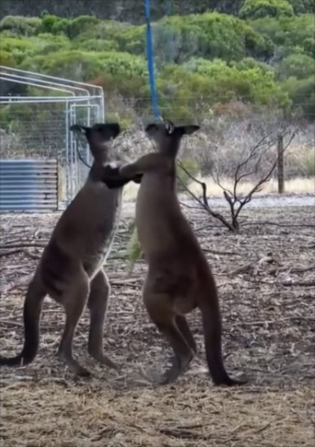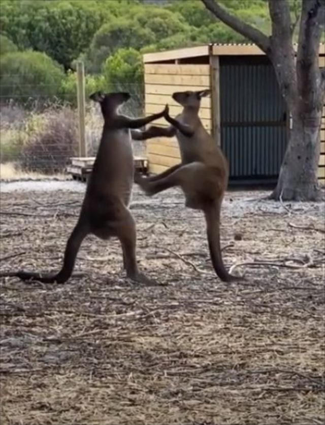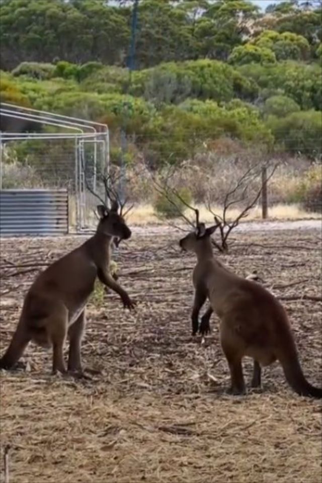 カンガルーたちが暮らしているのは、南オーストラリア州・カンガルー島のとある施設。同施設の運営者であるリサカランさんは、「このカンガルーの兄弟は、毎日このようにキックスキルを磨いている」と話しています。