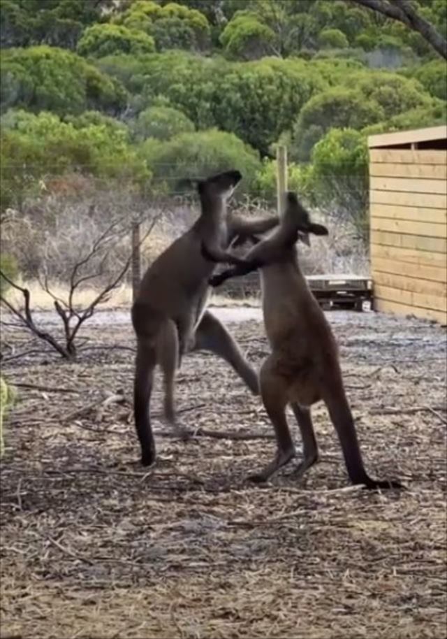 激しい戦いを繰り広げるカンガルーの兄弟・・・ケンカを仲裁したのは意外なものだった(笑)