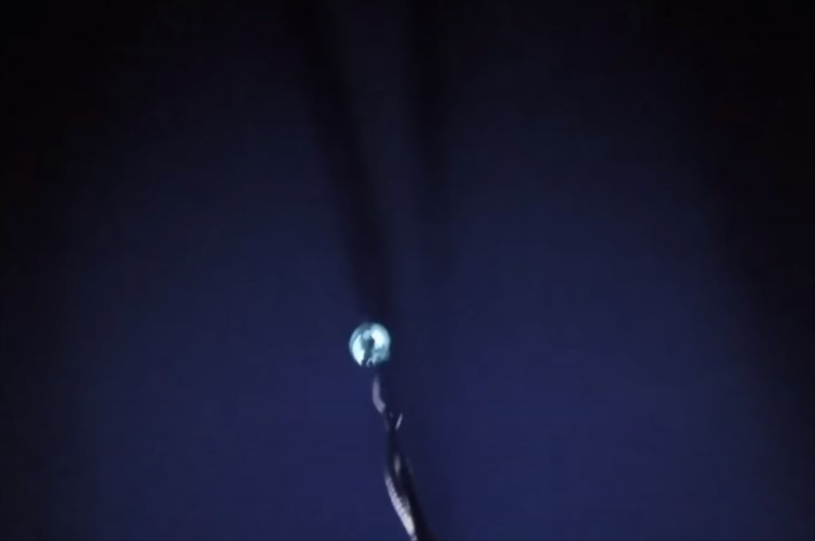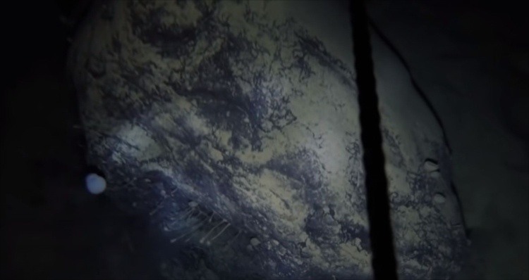 カメラは水深約1.2kmの地点まで到達。真っ暗ですね。そして、しばらくカメラをまわしていると・・・