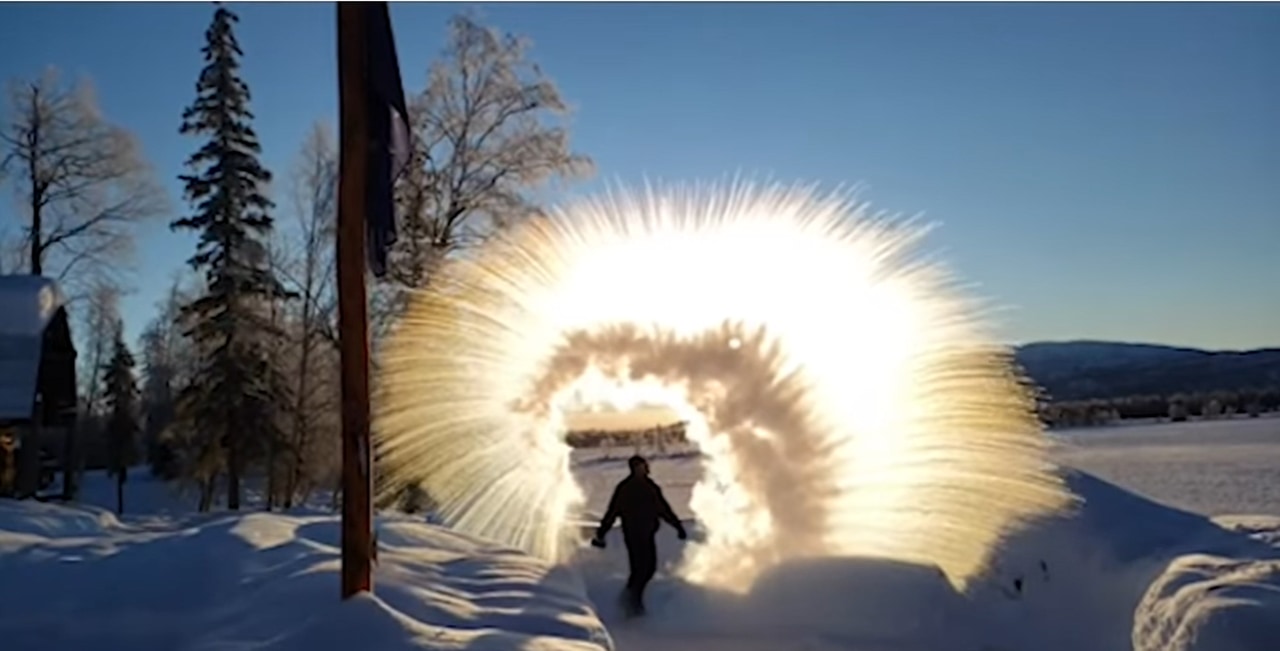 お湯は一瞬で細かな氷となり空中に広がり、神秘的な光景を見せてくれます。