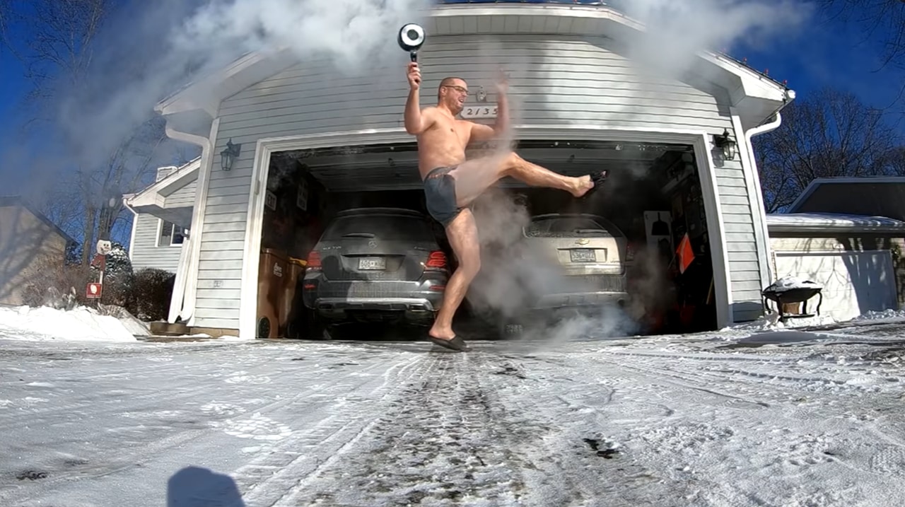 こちらの男性は知識がそれほどないまま、何故か裸でムペンバ効果の実験を行ってしまった様子。