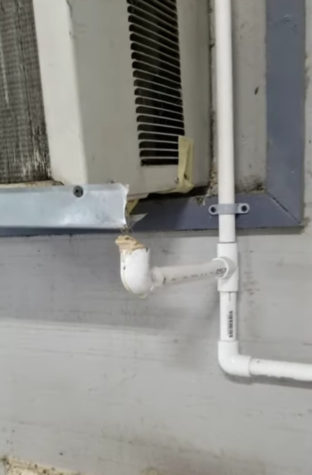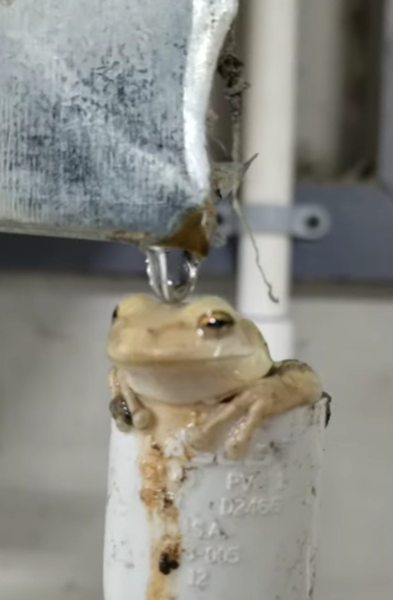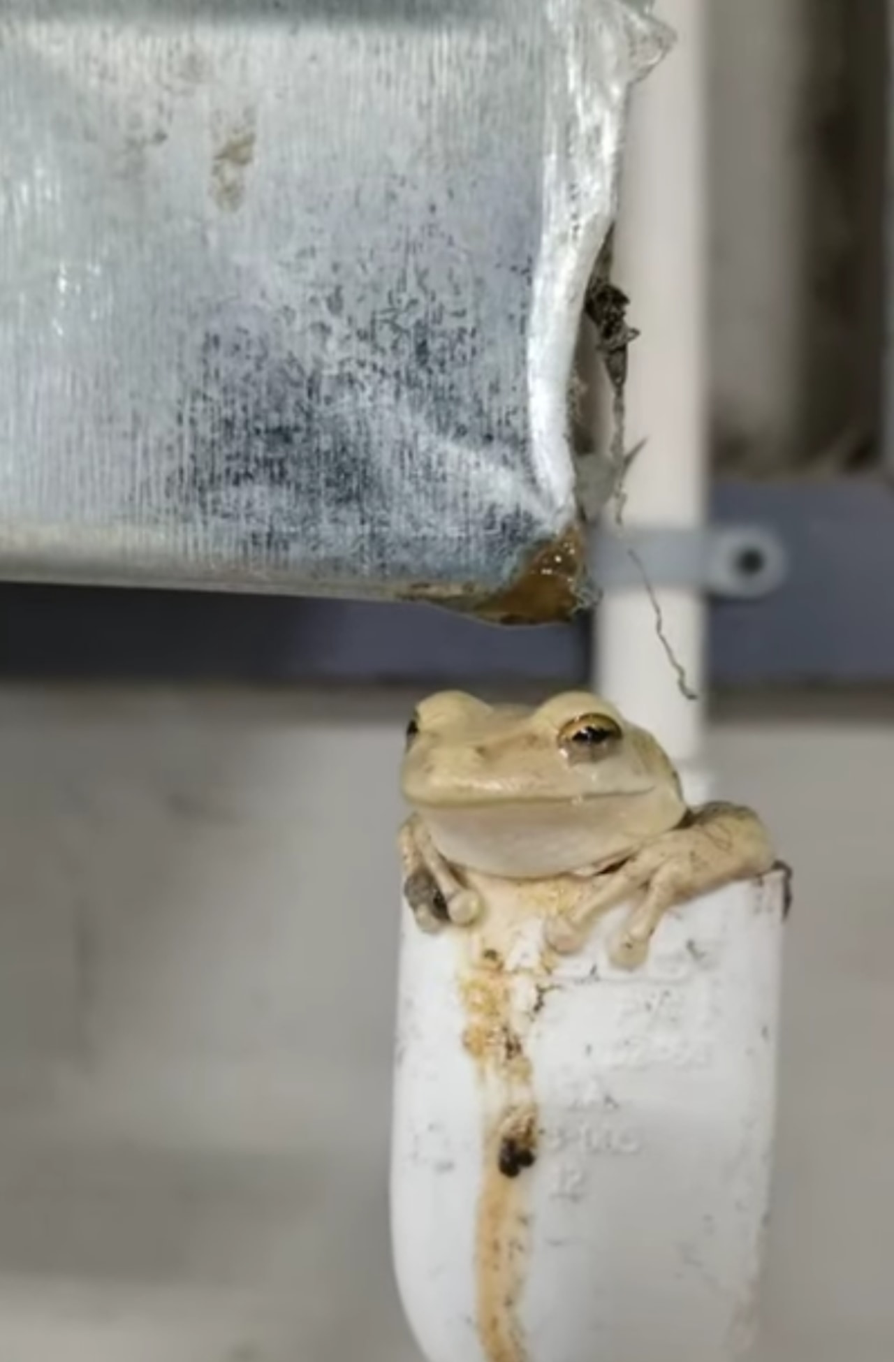 カエルが見つけたベストポジションは、エアコンの排水管だったのです。