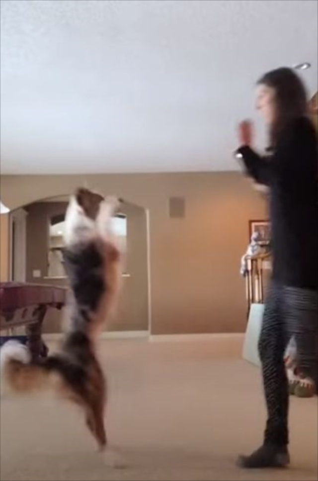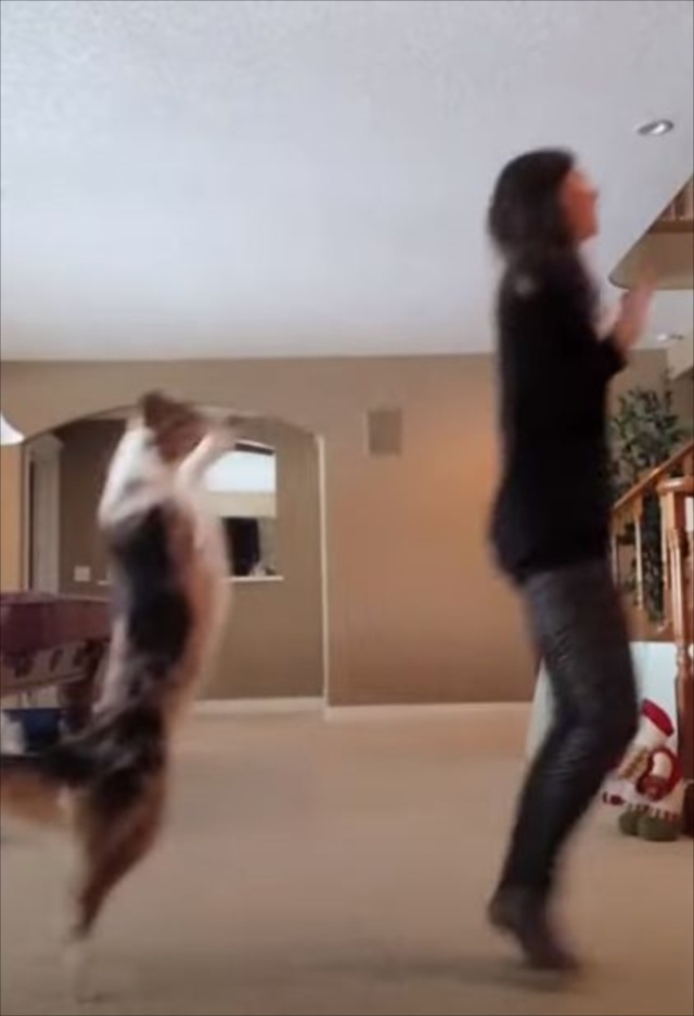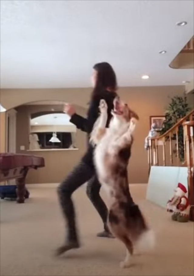 驚きのダンスを見せてくれたのは、飼い主のカテリーナさんとワンコ。時間さえあれば一緒に踊っているそうです。カテリーナさんがバックステップを踏んでいると・・・