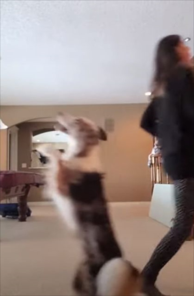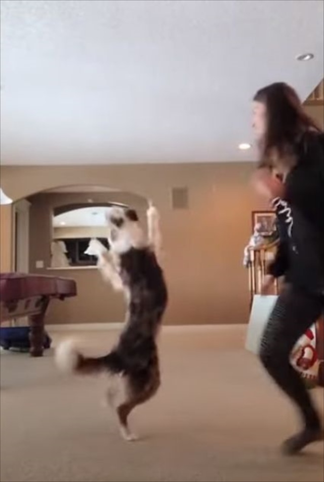 ワンコは大好きな人と一緒にいて嬉しい時や甘えたい時に後ろ脚で立ったりするといいますが、まさに喜びを爆発させているのでしょうね~。ぴょんぴょん跳ねてついていく姿は可愛すぎます!