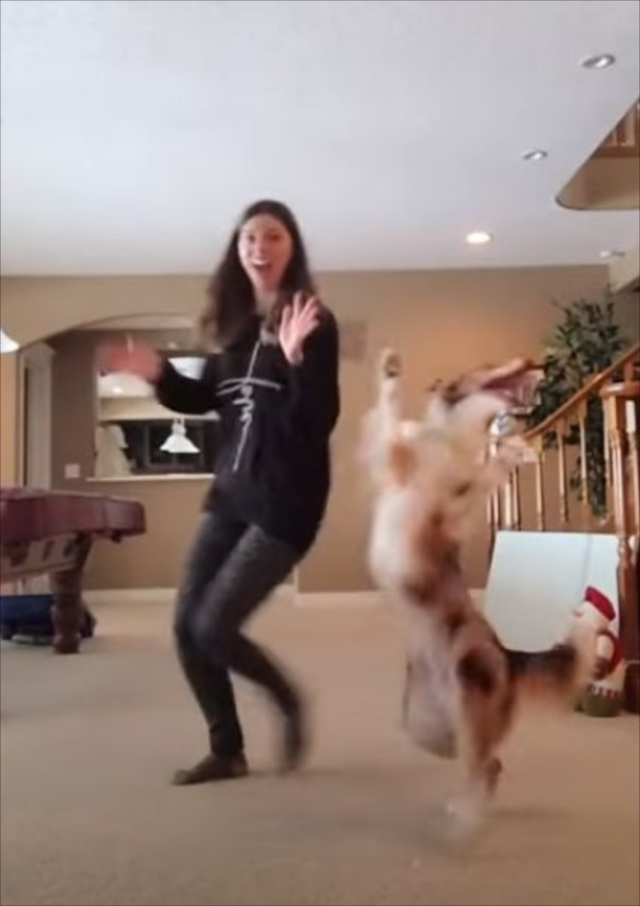 出典:YouTube(Dancing dog has the best time busting a move with her owner)