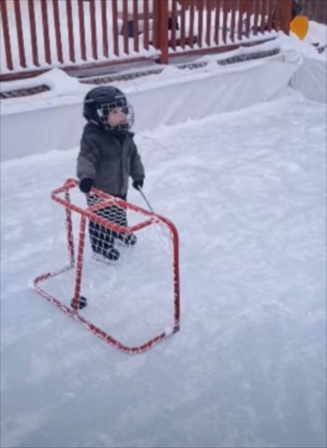 スケートも上手でアイスホッケーの大まかなルールも理解しているようですが、さすがにゴールを持ってくるという発想は子供ならではという感じです。いずれにせよ、このしたたかさは将来有望ですね(笑)