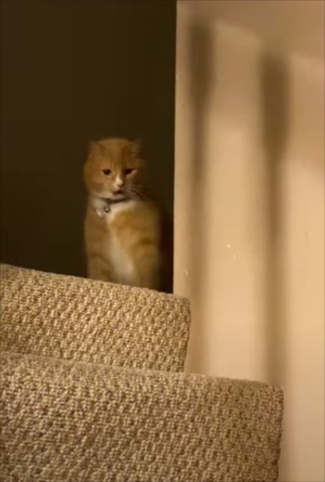 そして、そのミニドローンが向かった先にいたのはニャンコ。「来たニャ」という感じで待ち構えていますね。