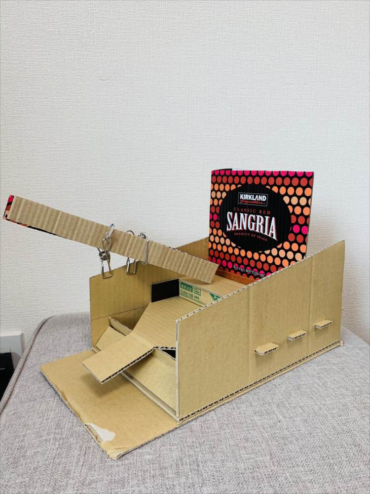 ちなみに制作にかかった時間は約5時間程度とのこと。3つの段ボールから切り出して作られたようです。
