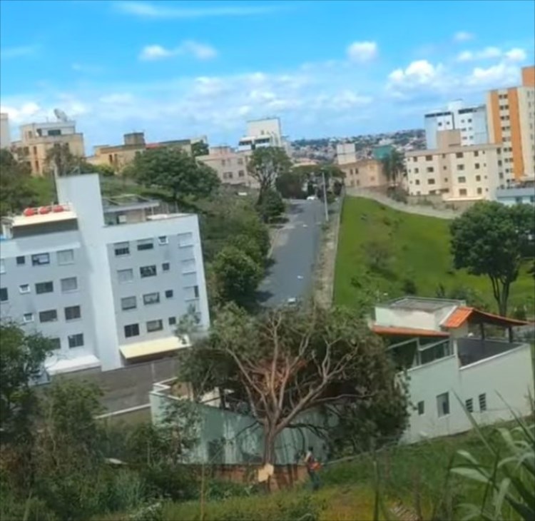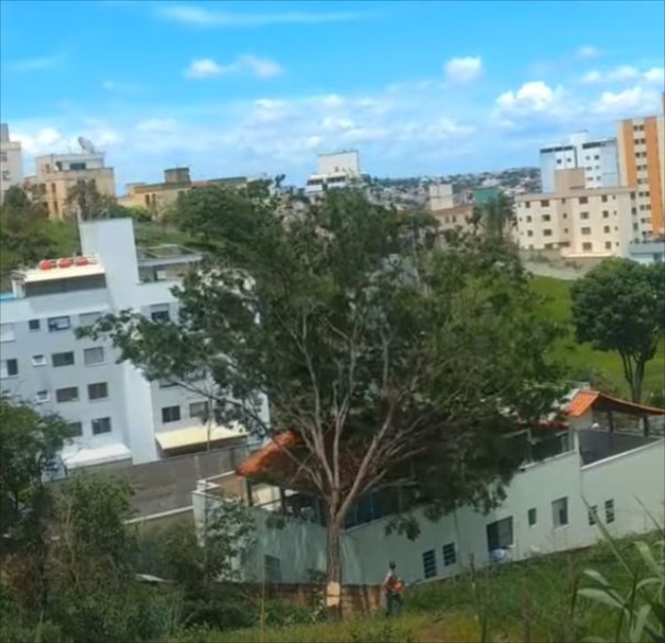 場所はブラジルのミナスジェライス州・ベロオリゾンテ。目の前では、チェーンソーで木を伐採する作業が行われています。