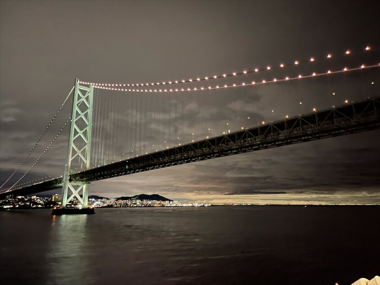 たぬきねこさんは、明石海峡大橋の夜景の写真も投稿されています。濃霧がすっかりと晴れた後だそうです。