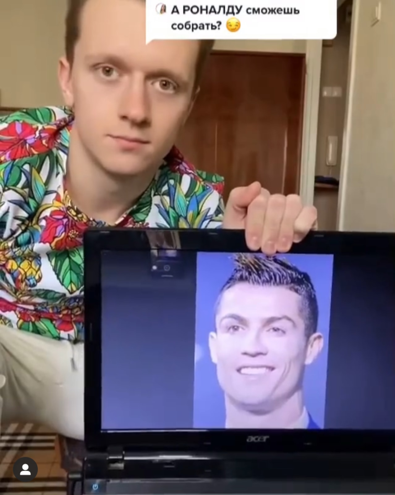 現れたのは、最初に見せたC・ロナウド選手の写真をモデルにしたピクセルアート作品。見てお分かりの通り、ルービックキューブの色や柄を組み合わせることで輪郭や顔のパーツを見事に表現しているんです。