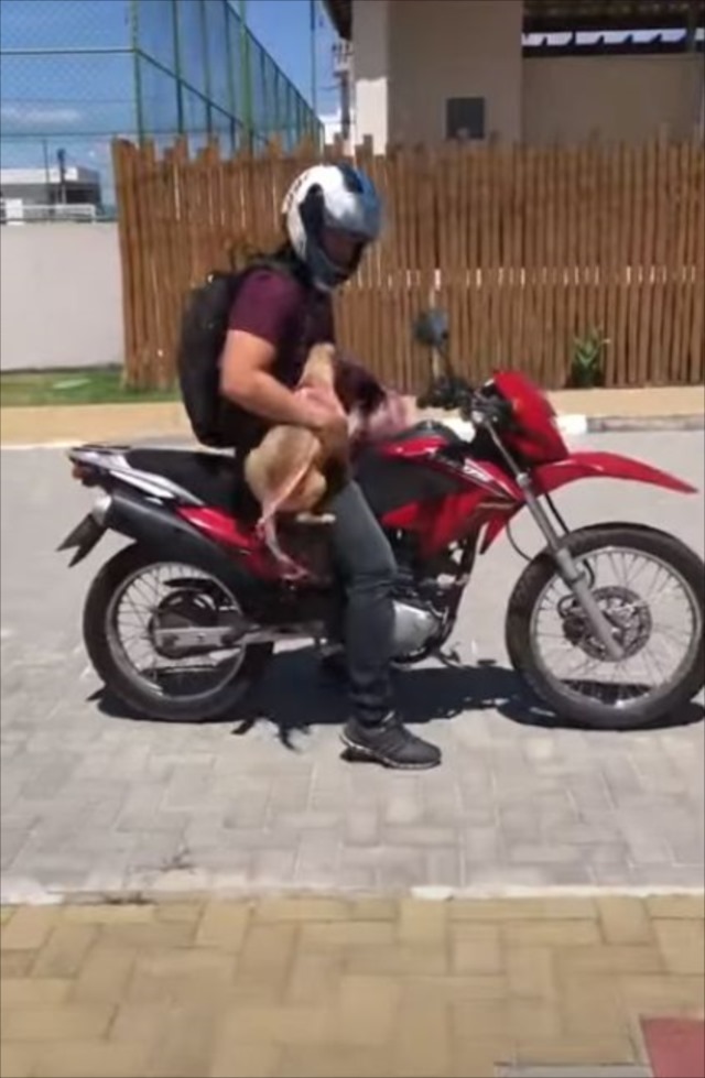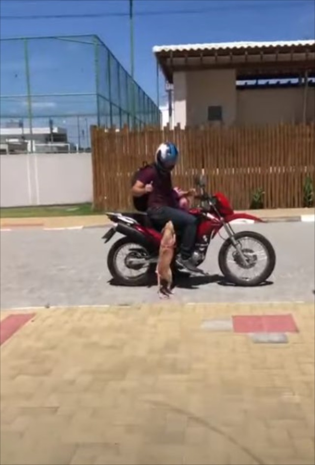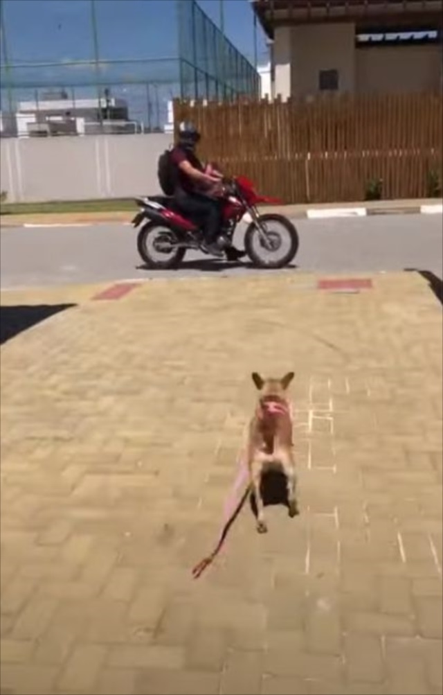 こちらは、ブラジルのフェイラ・デ・サンタナのとあるご家庭。バイクにまたがっている飼い主さんを見つけると、ワンコは興奮が頂点に達したのか勢いよくダッシュ!!