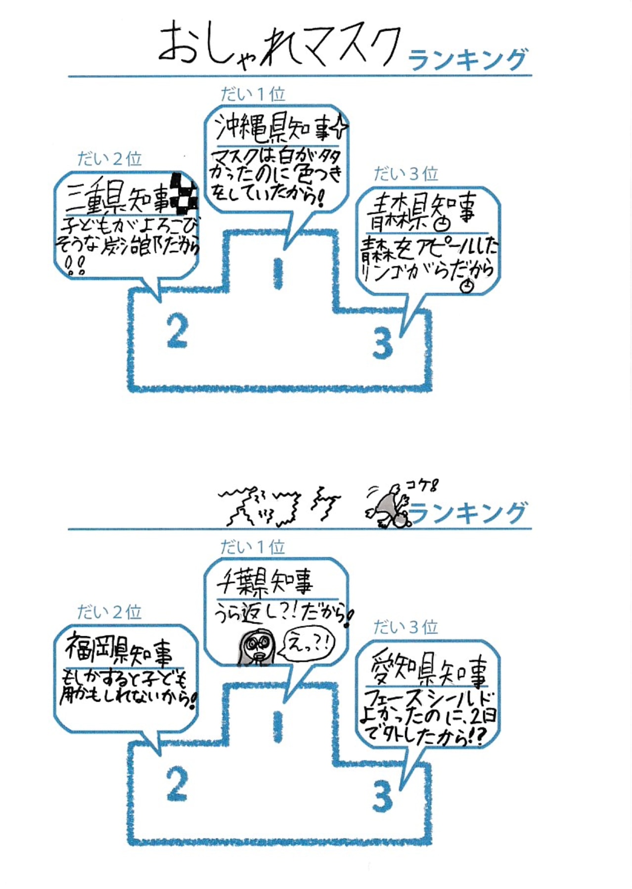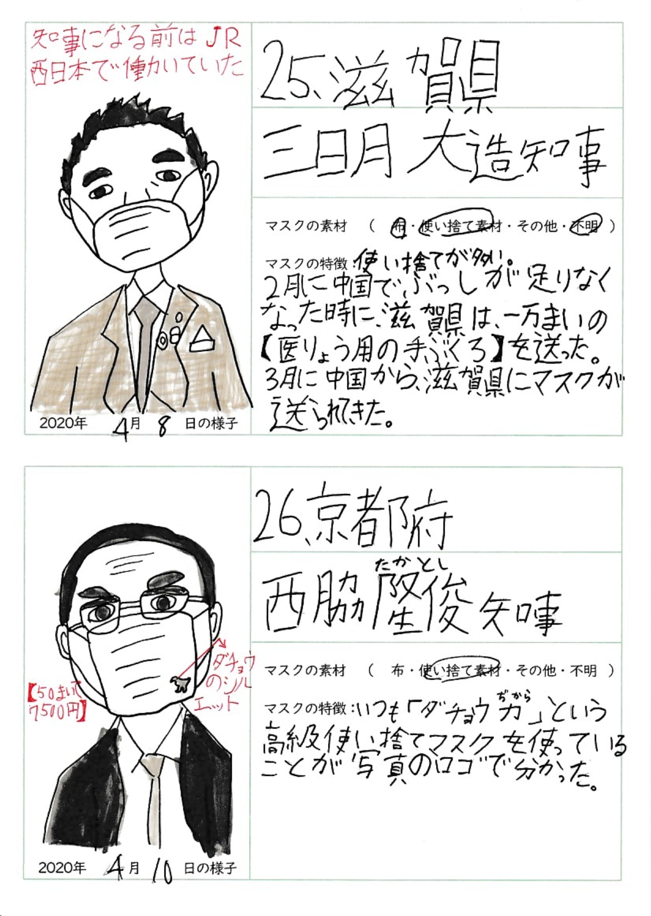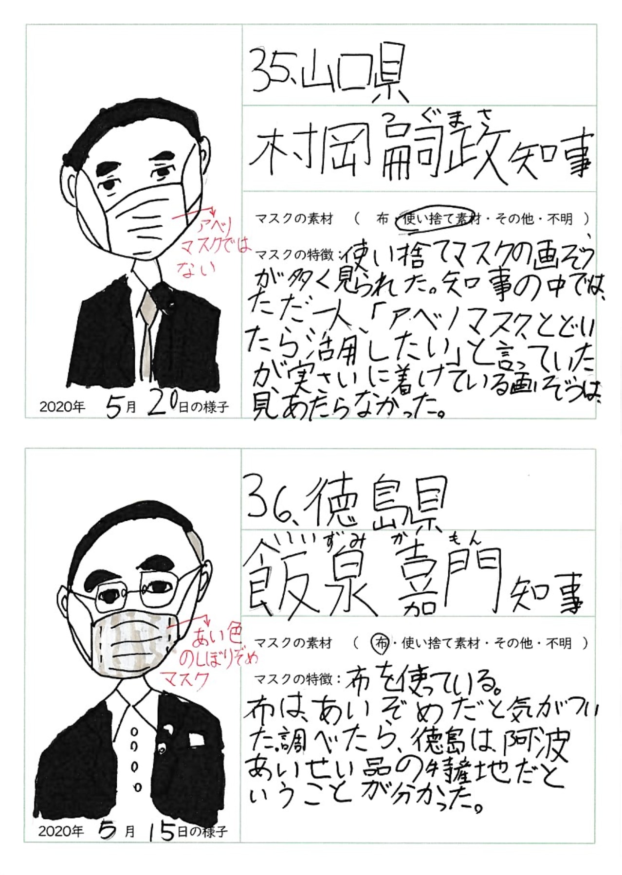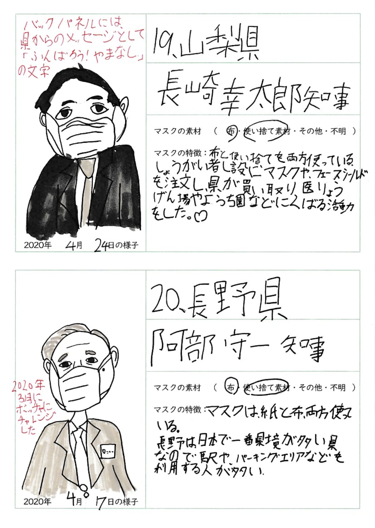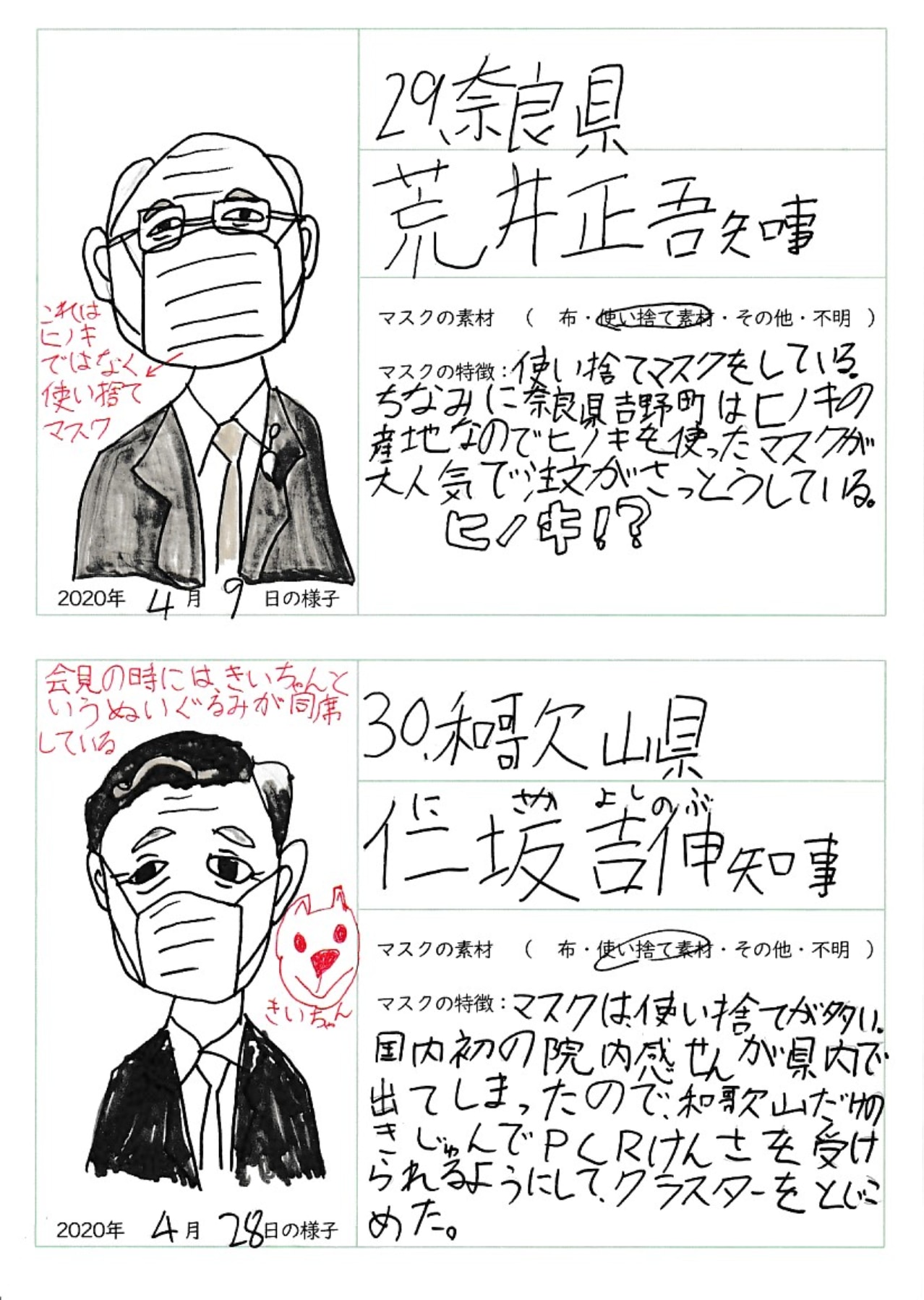 マスクについての観察も立派ですが、「ニコニコ笑顔のことが多い」「岩手はラストまで感せん者0でがんばった県です」などなど、メモが添えられているのがナイスです。