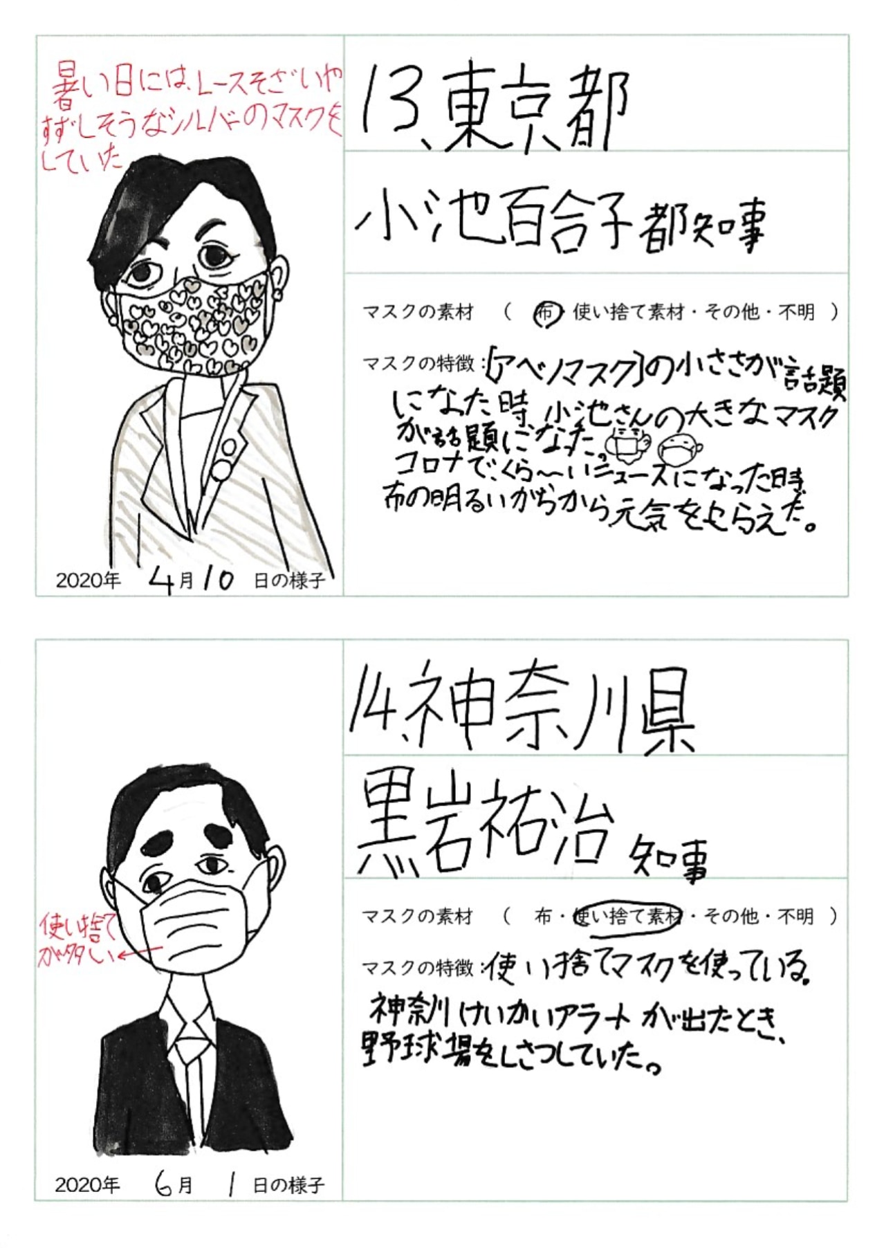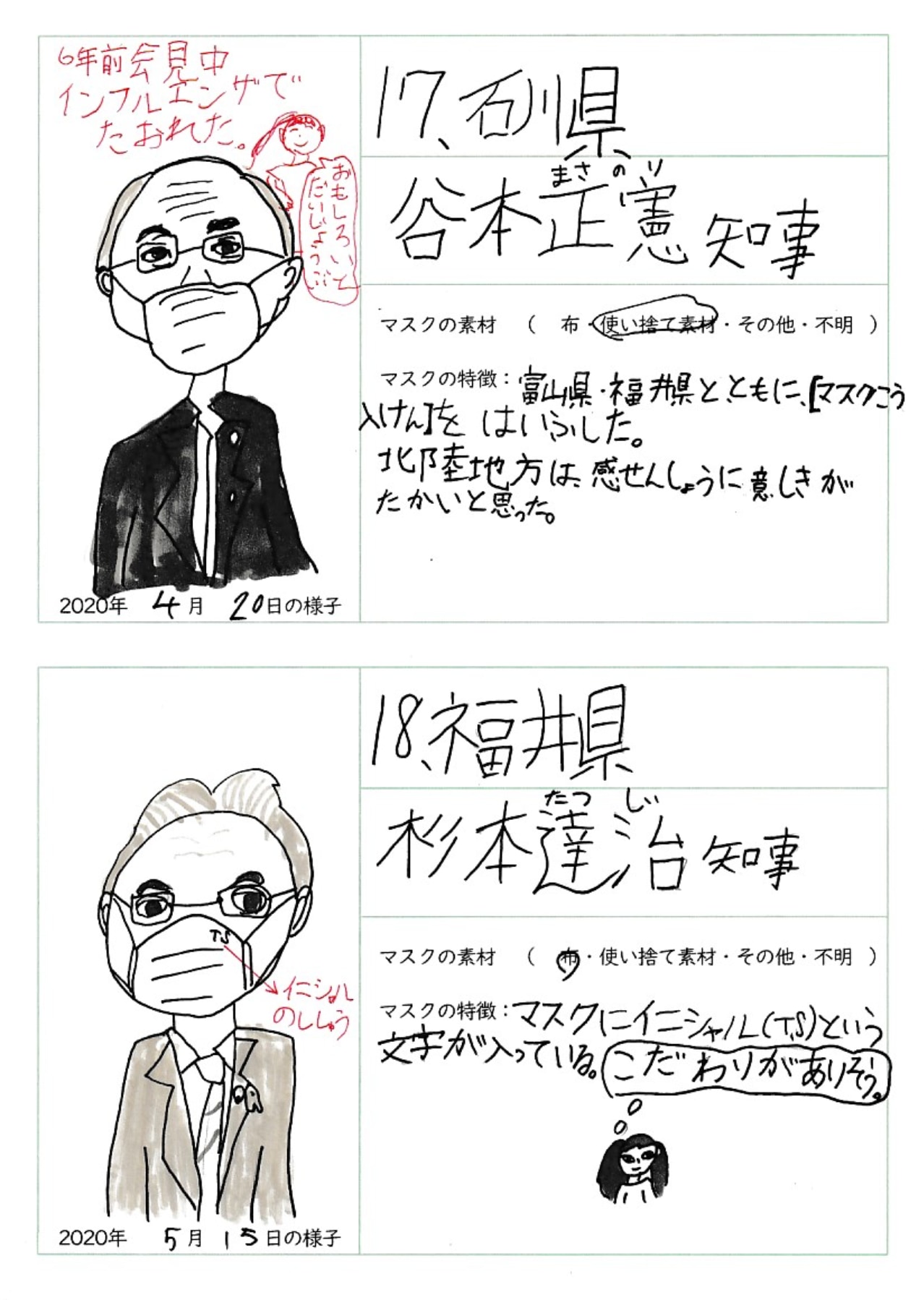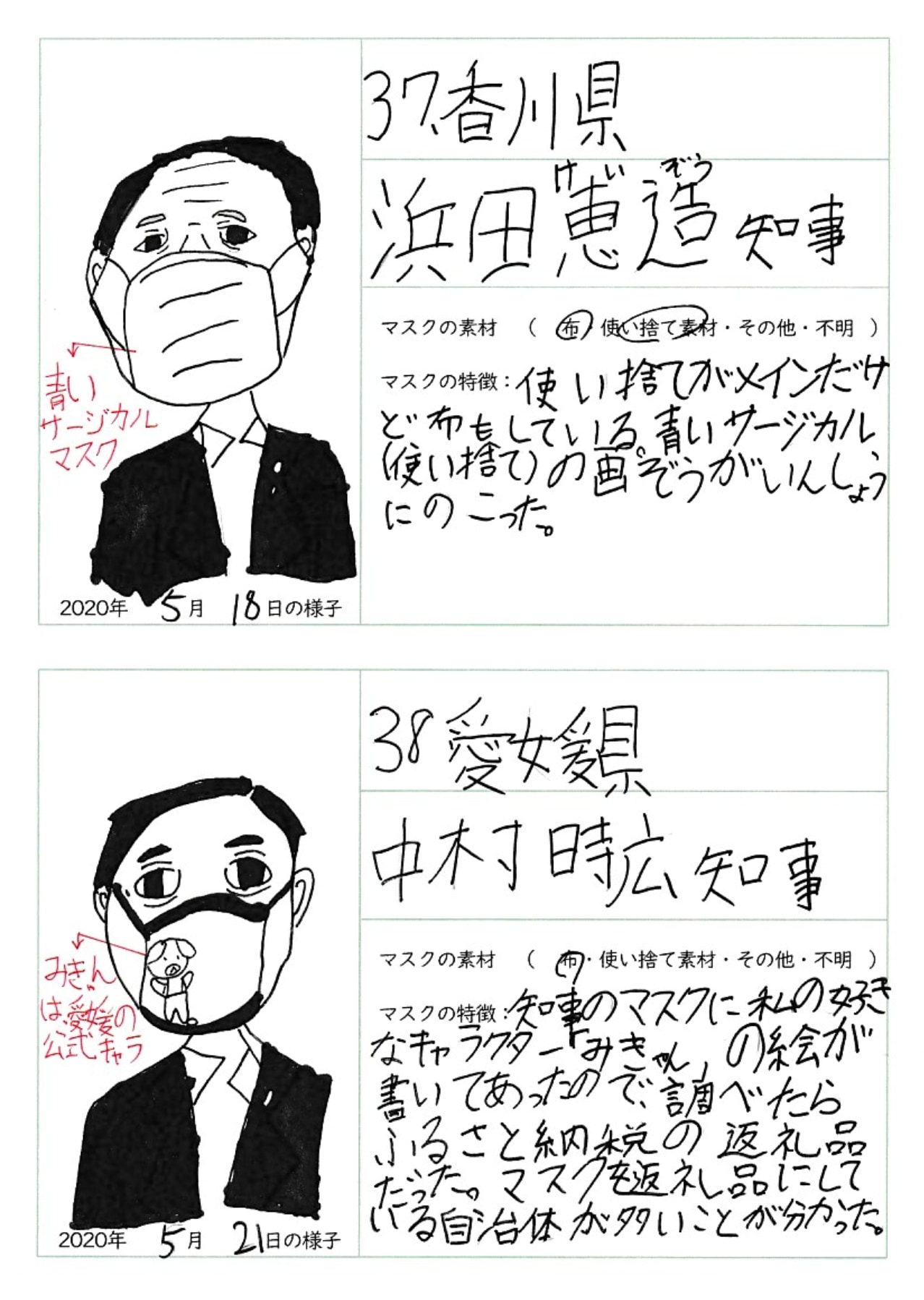 テーマはなんと知事のマスク。娘さんは全国47都道府県の知事がどんなマスクを着用しているのか、様々な視点から調査し報告しています。