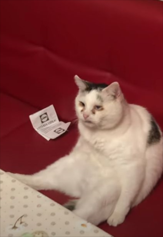 正確に言うのであれば、猫なので「人生」とは言いませんが、この表情が人間じみているのであえて表現すると、人生にうんざりしているような表情です。