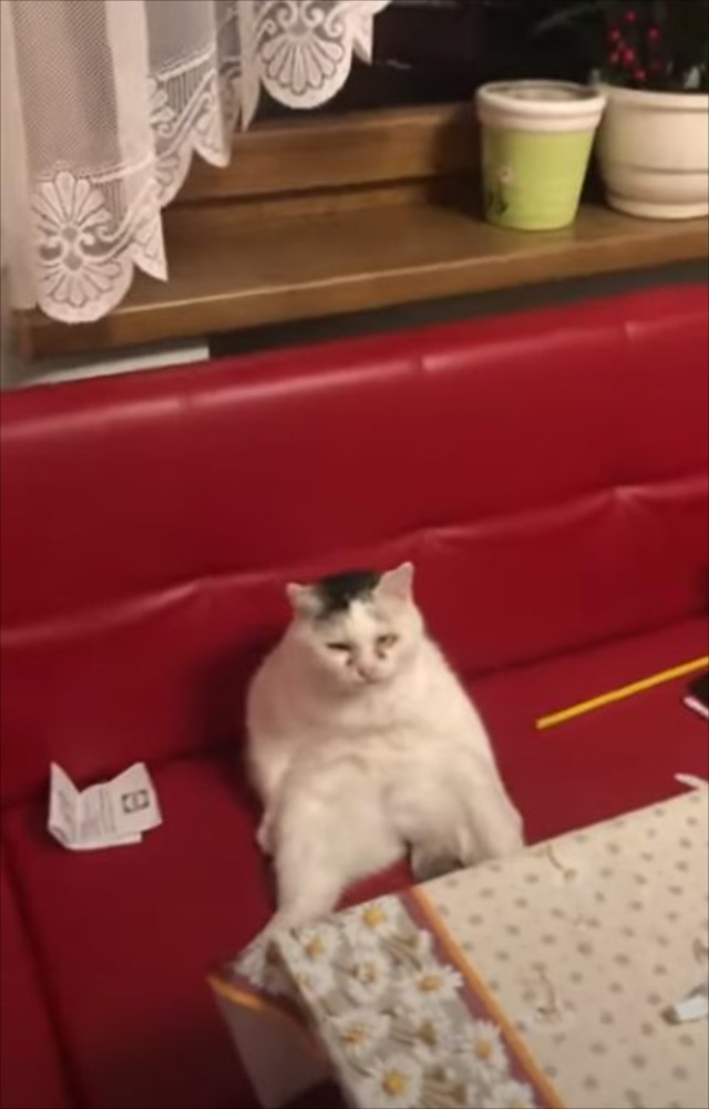 ただ単にニャンコが座っているだけなのですが、醸し出す雰囲気といい表情といい、ついつい何回も見てしまいたくなる味わい深い動画です。