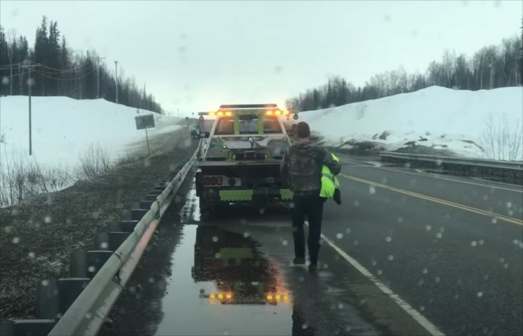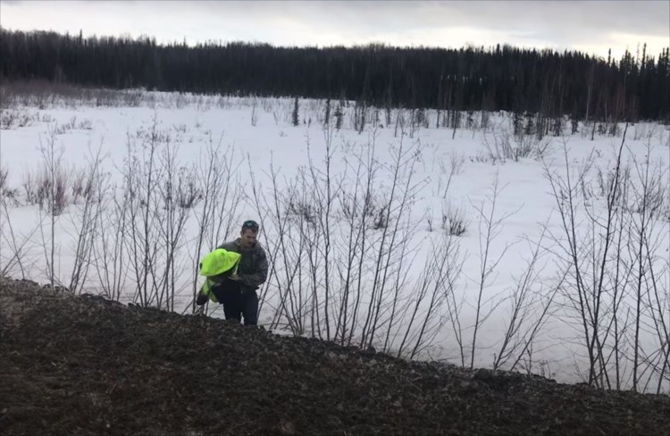 場所は米アラスカ州ウィロー。一面に雪が積もり、その中に何かが倒れています。