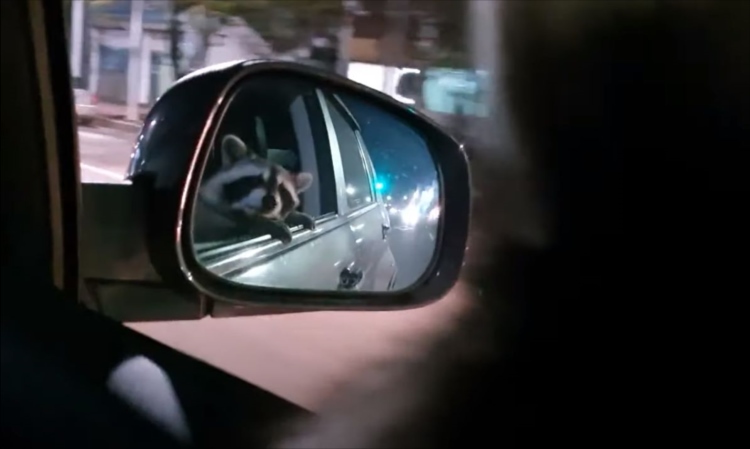 出典:YouTube(Coolest raccoon ever goes for a night drive)