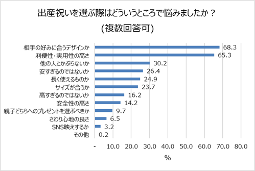「相手の好みに合うデザインか(68.3%)」「利便性・実用性の高さ(65.3%)」と答える方が非常に多い結果となりました。