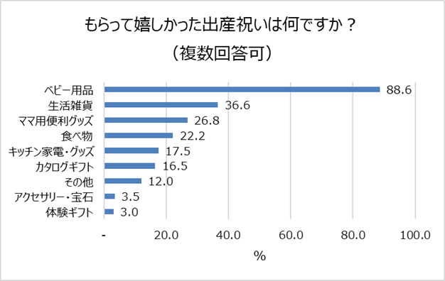 何を贈れば喜ばれるか、これを実際に結婚・出産を経験された方が解答されたアンケート結果から見ていきましょう。