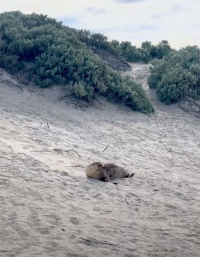 そしてこちらが、同公園の砂丘から転がり落ちているアザラシ。