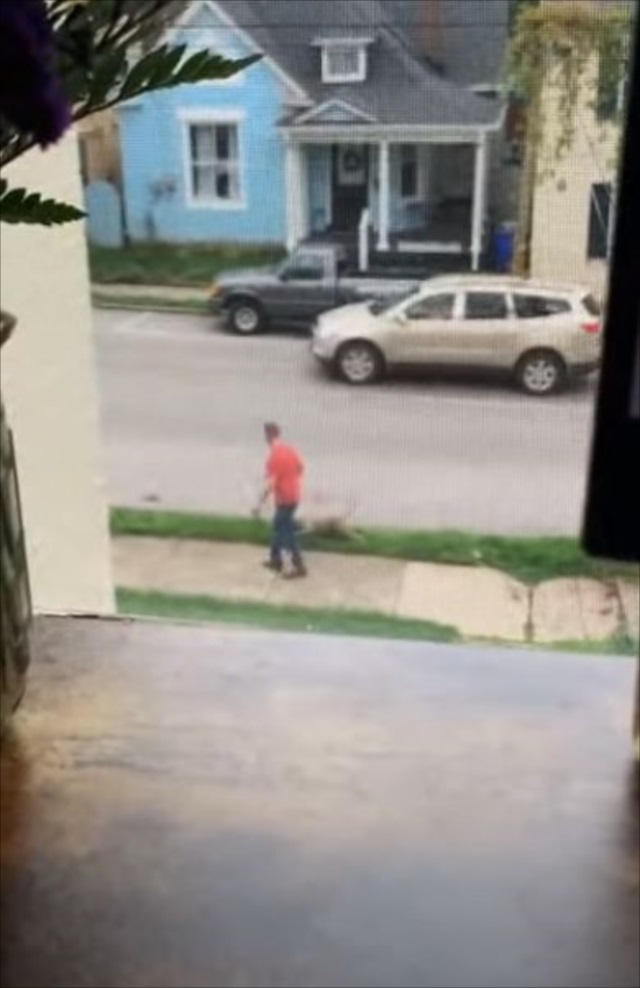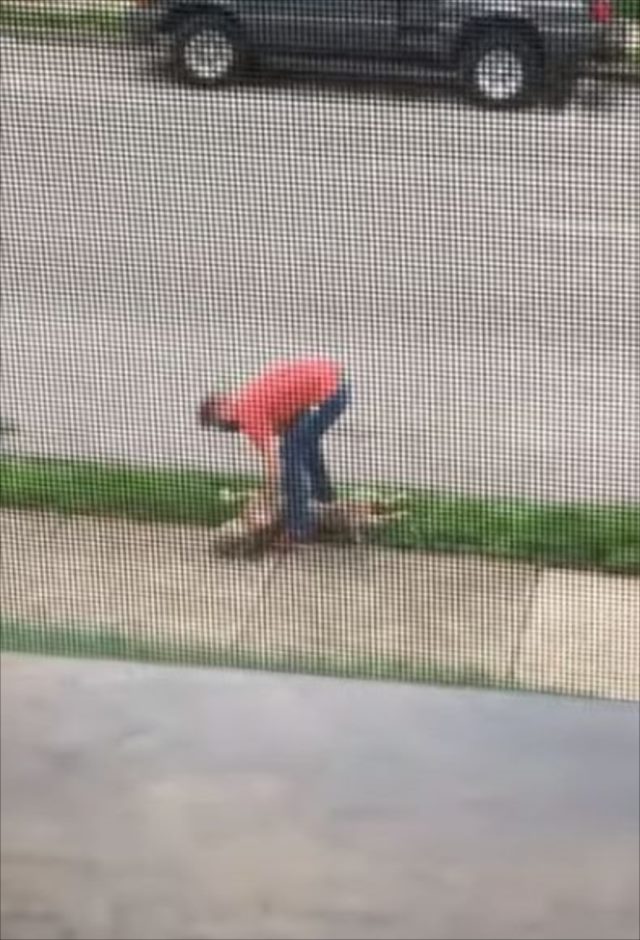 動画を撮っている女性の言葉を聞く限り、男性とワンコにとって、このお家の前の通りはいつもの散歩コースのようですが・・・。